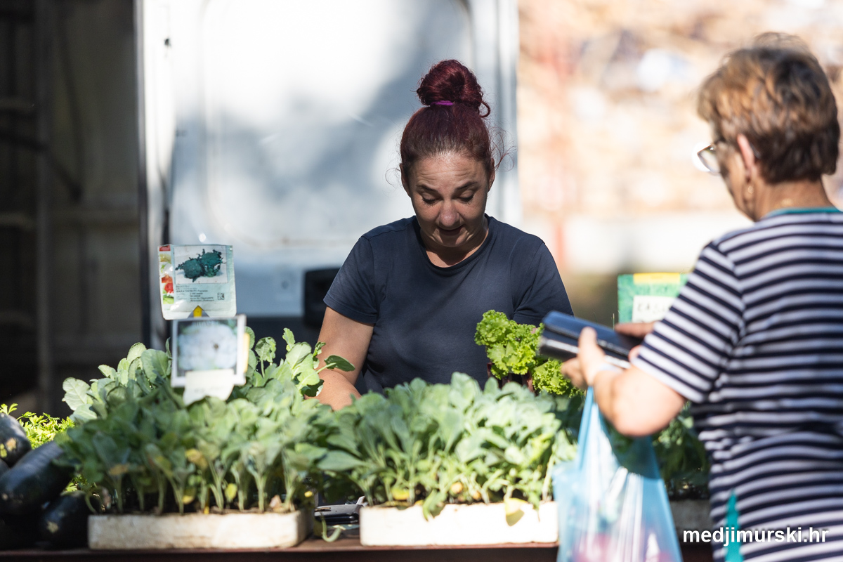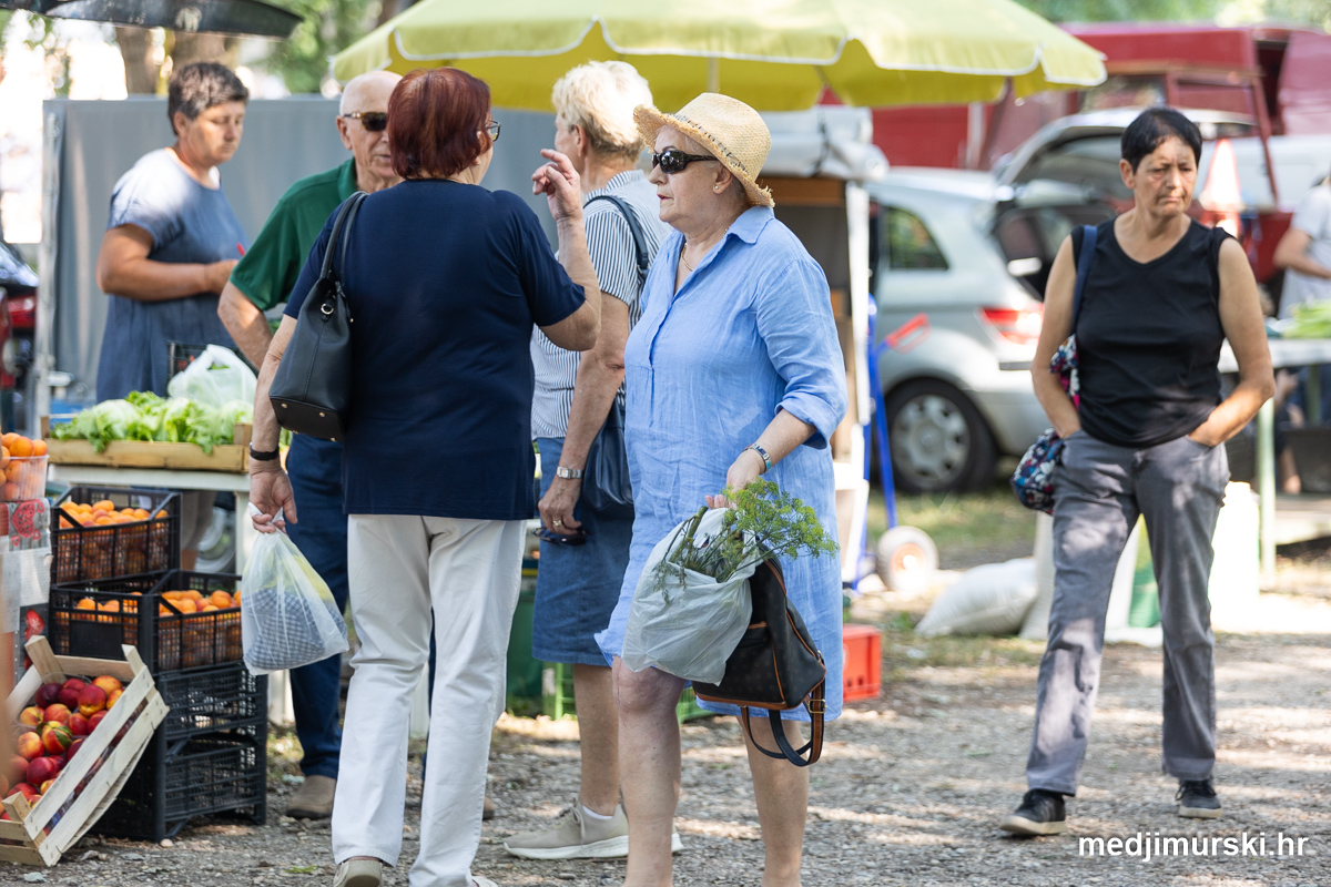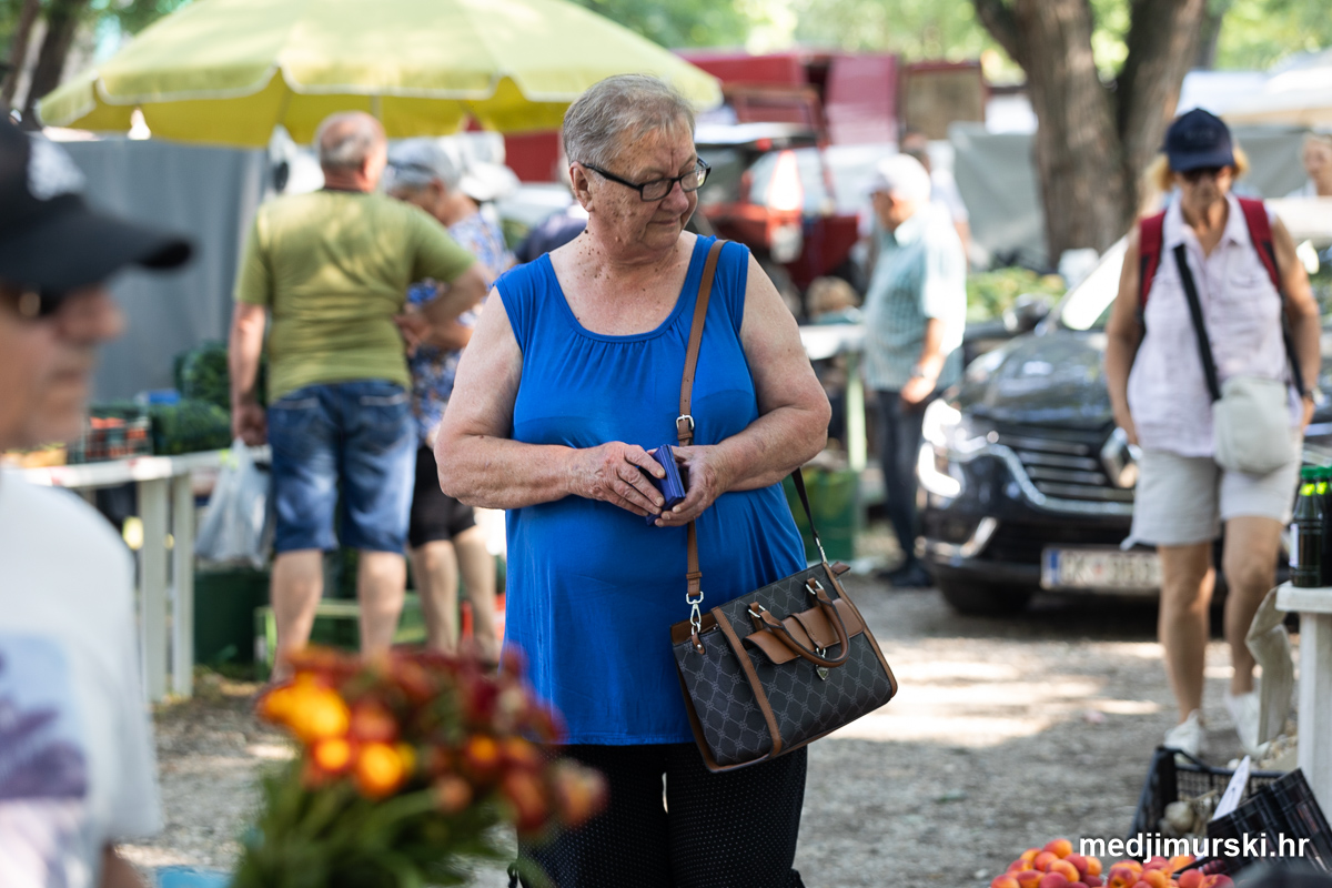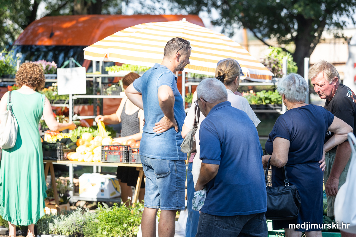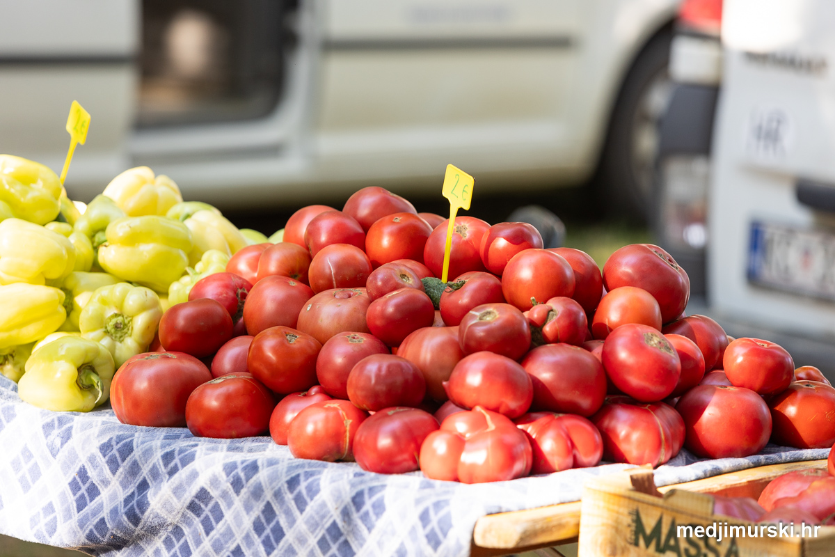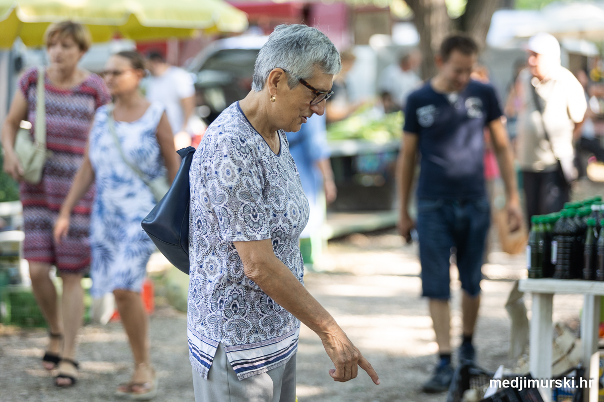 Da, da, cijene poljoprivrednih proizvoda na čakovečkom sajmu osjetno su pale u odnosu na prošlu srijedu. Mladi grah čak je upola jeftiniji. Neočišćen u vrećama prodavan je po 2 eura kilogram, a očišćen 5 eura kg. To je ista cijena kao i prošle godine.