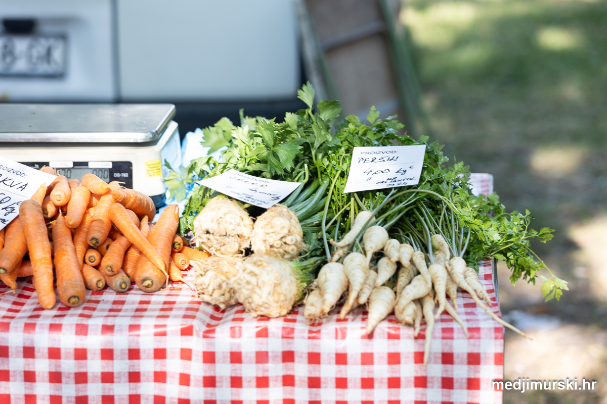 Kilogram mladog luka nuđen je po 1 eura kilogram. Bijelo zelje bilo je po 1 euro glavica. Crveno zelje prodavano je po 2 eura kg, a zelene tikvice po 1 eura kg. Šampinjoni su nuđeni po 4 eura kilogram, mladi celer i peršin po 4 eura kg, a mrkva po 2. Zelena salata bila je po 0,50 eura komad, a kelj je nuđen po 1,5 eura kg. Rajčica je prodavana od 1 do 2 eura kilogram. Cikla po 1,5 eura kg.