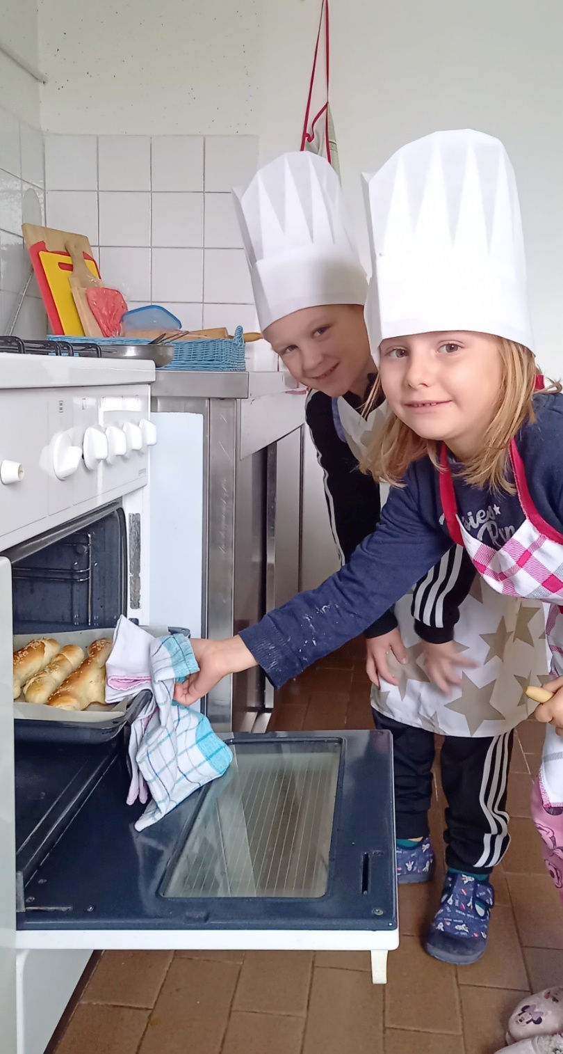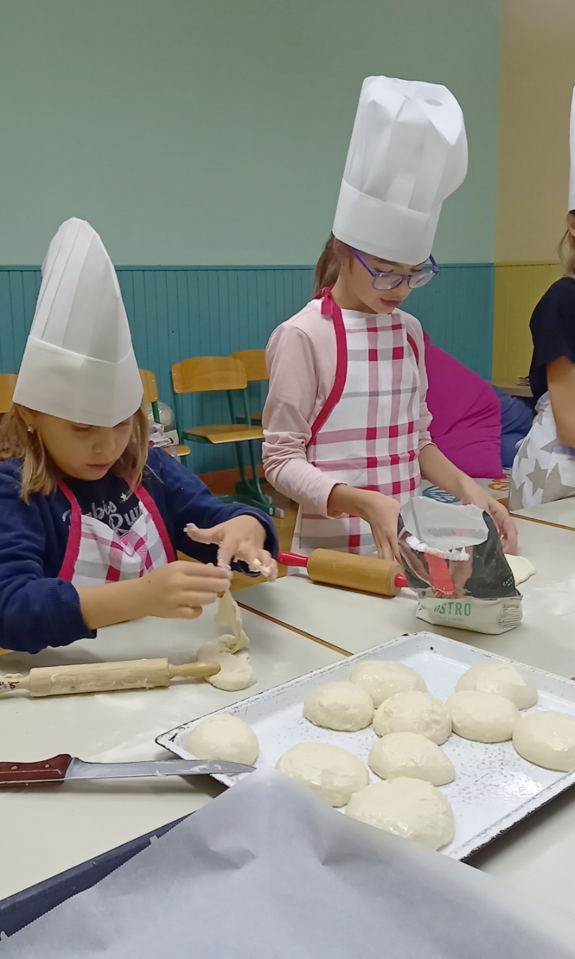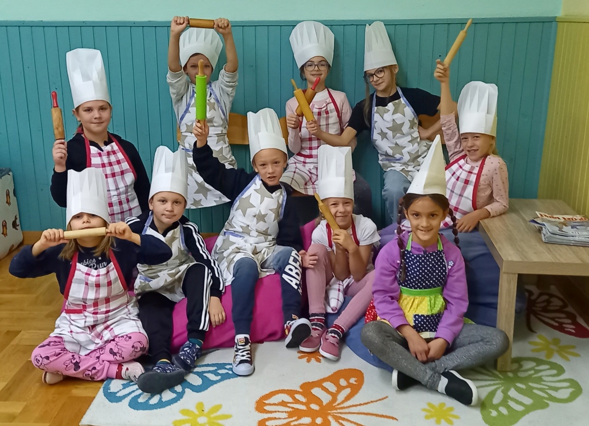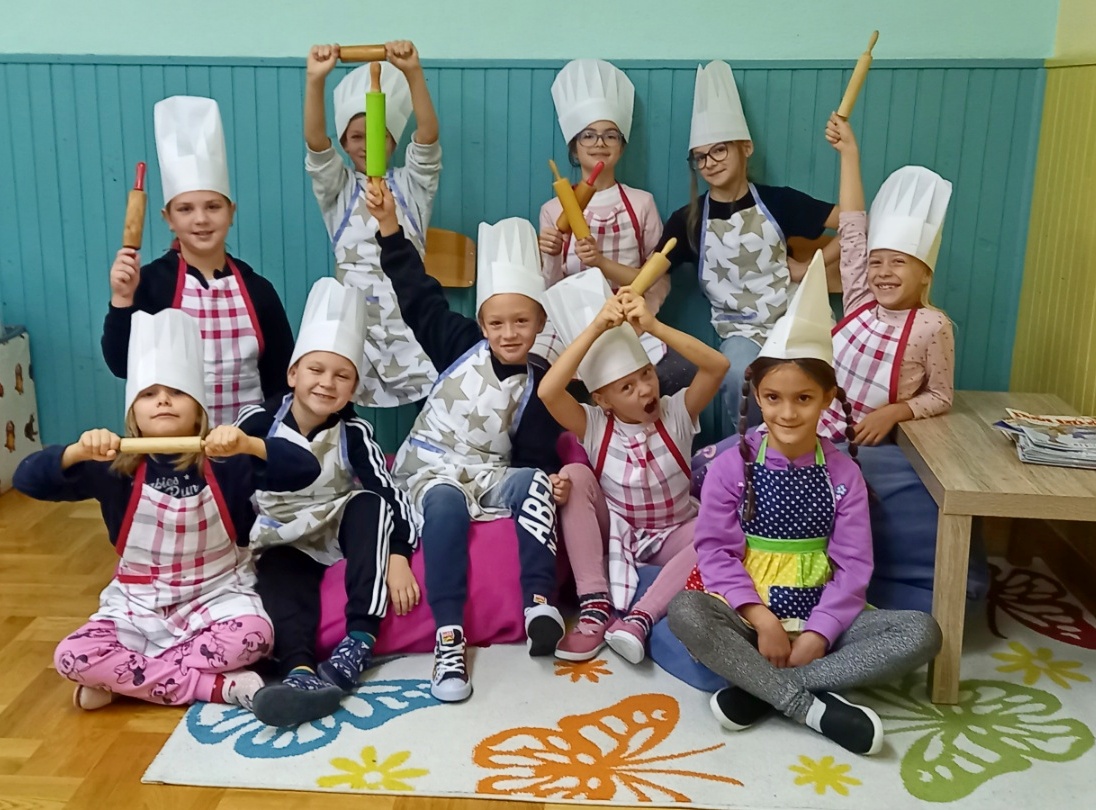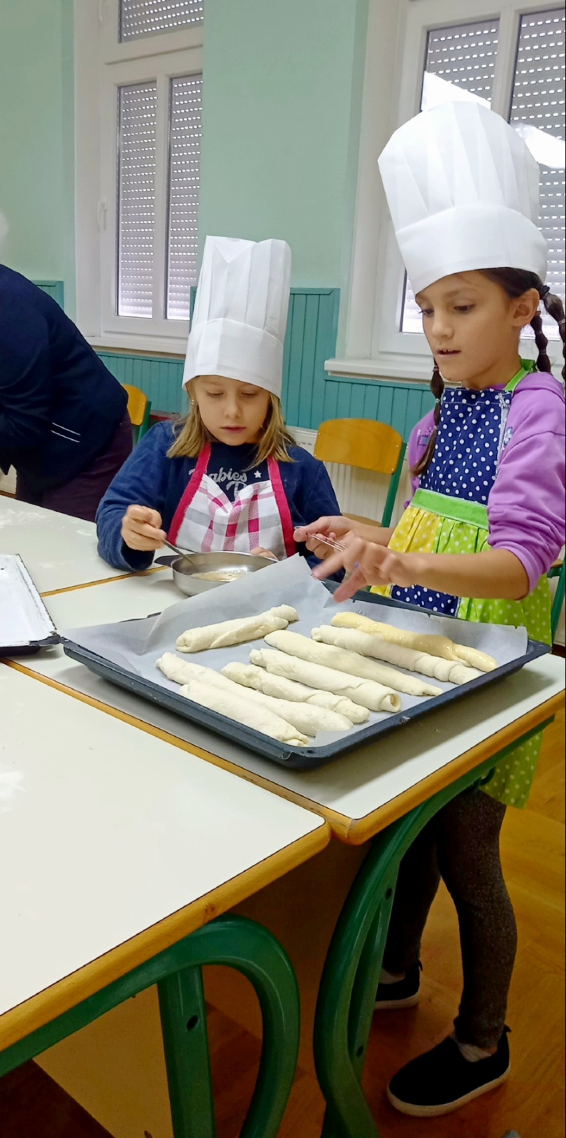 U školi u Donjem Mihaljevcu kuharica je zamijesila tijesto, a učenici svih razreda, 1., 2. i 4., dalje su nastavili ulogu pekara, oduševljeno valjajući tijesto, oblikujući ga i pekavši kruščiće.