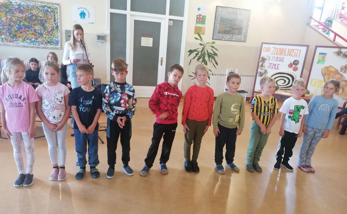 No, prije toga održan je kratki prigodni program. Učenici prvog razreda, pod vodstvom učiteljice Marije Bobić, pripremili su recitacije i pjesmicu o kruhu, a vjeroučiteljica Anica Trstenjak je sa svim učenicima pripremila pjesmu „Zahvali“ koja je izvedena i na znakovnom jeziku. Također je, umjesto župnika Mirka Pilaja koji je bio spriječen u dolasku, blagoslovila svu pripremljenu hranu.