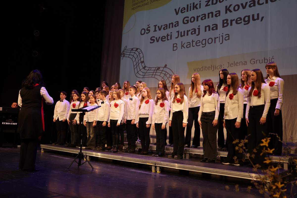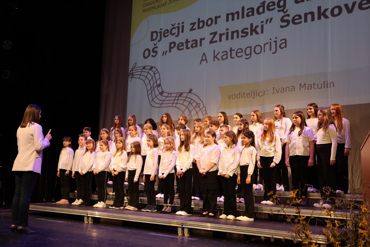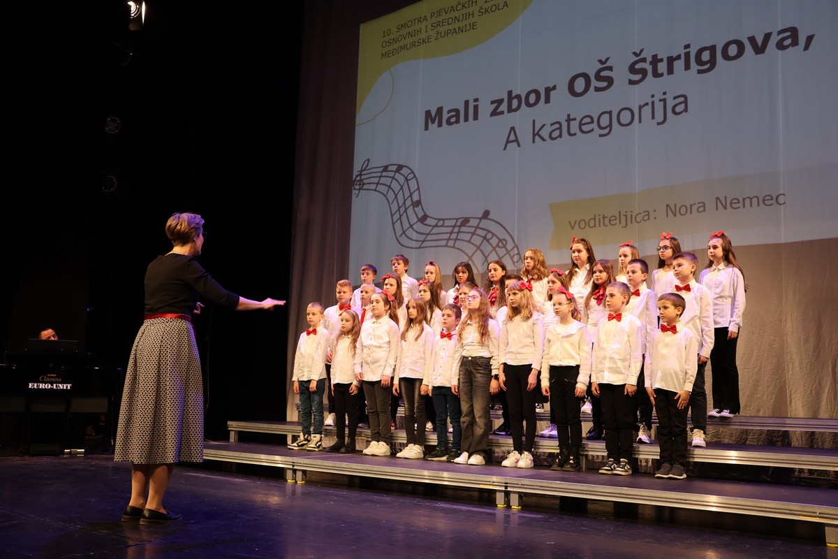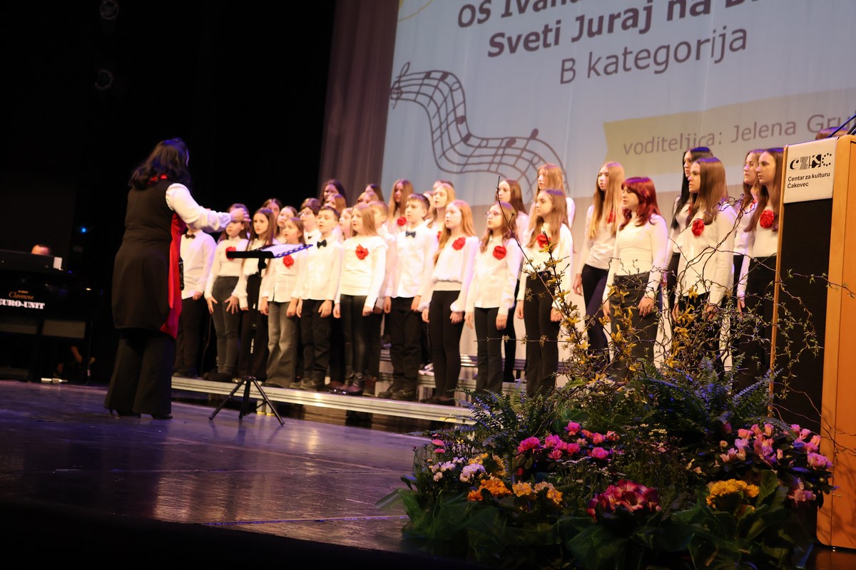 Na pozornici Centra za kulturu u natjecateljskoj kategoriji nastupili su sljedeći zborovi po uzrasnim kategorijama: Dječji zbor mlađeg uzrasta OŠ Petar Zrinski Šenkovec pod vodstvom Ivane Matulin, Mali zbor OŠ Štrigova pod vodstvom Nore Nemec i Veliki zbor OŠ Ivana Gorana Kovačića Sveti Juraj na Bregu pod vodstvom Jelene Grubić.