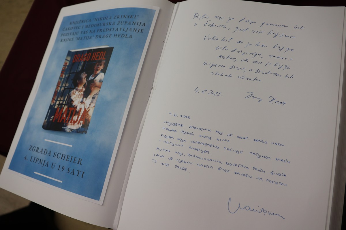 U utorak, 4. lipnja, Zgrada Scheier u Čakovcu bila je ispunjena tišinom koja govori više od riječi. U organizaciji Knjižnice i čitaonice Nikola Zrinski Čakovec i Međimurske županije, održano je predstavljanje knjige „Matija“, najosobnijeg i najpotresnijeg romana novinara i književnika Drage Hedla.