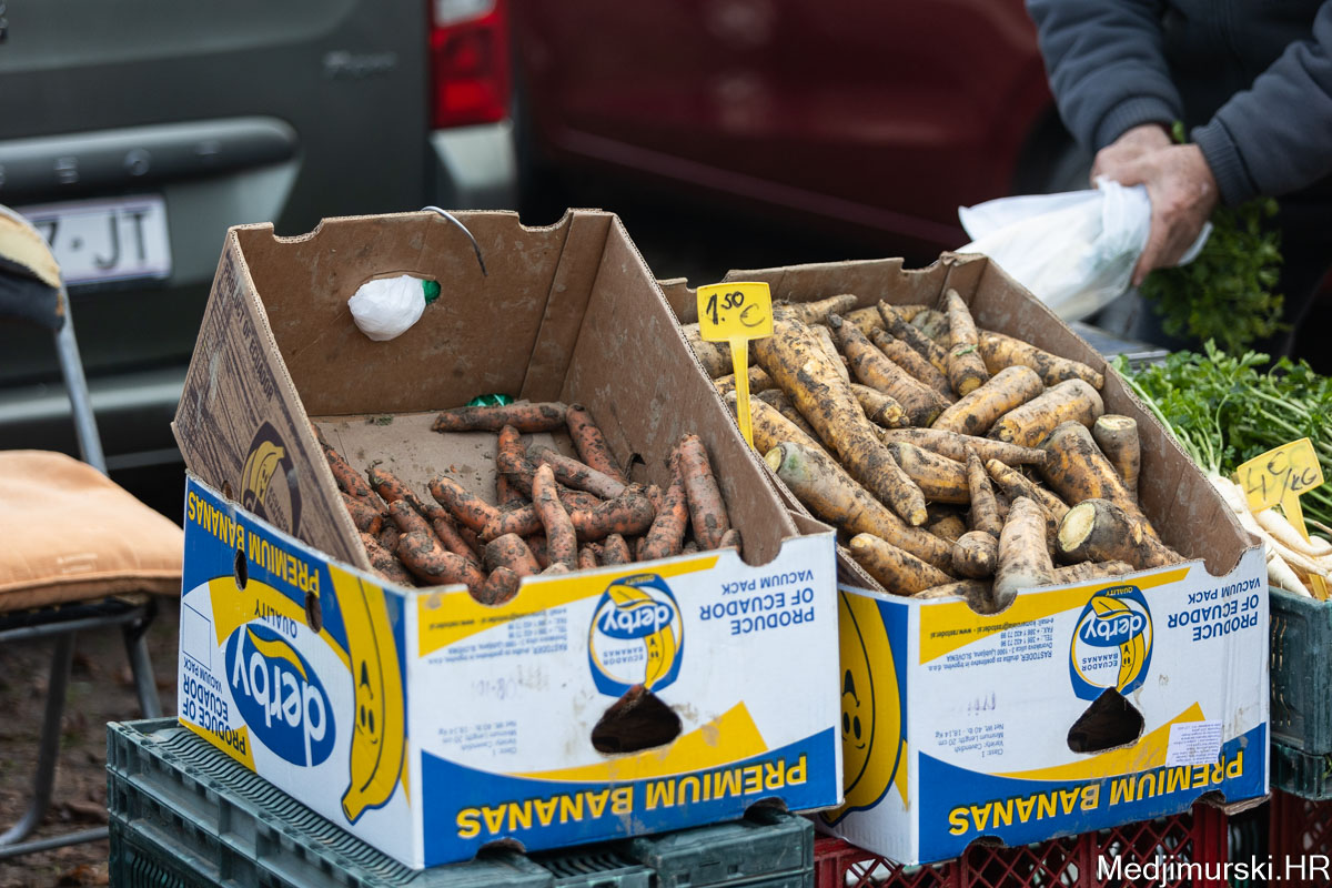Češnjak domaći bio je po 4 eura kilogram, batat po 2 eura, mrkva od 1,5 do 2 eura, cvjetača 2 eura kg. Krumpir je bio od 0,40 do 1 euro kg.