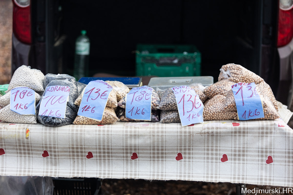 Suhi grah trešnjevac prodavan je po 6 eura kg, ali je zato je crni suhi grah tzv. kornjača bio po 10 eura kg! Putrek sivi bio je o 13, grah kerber čak po 18 eura kilogram.