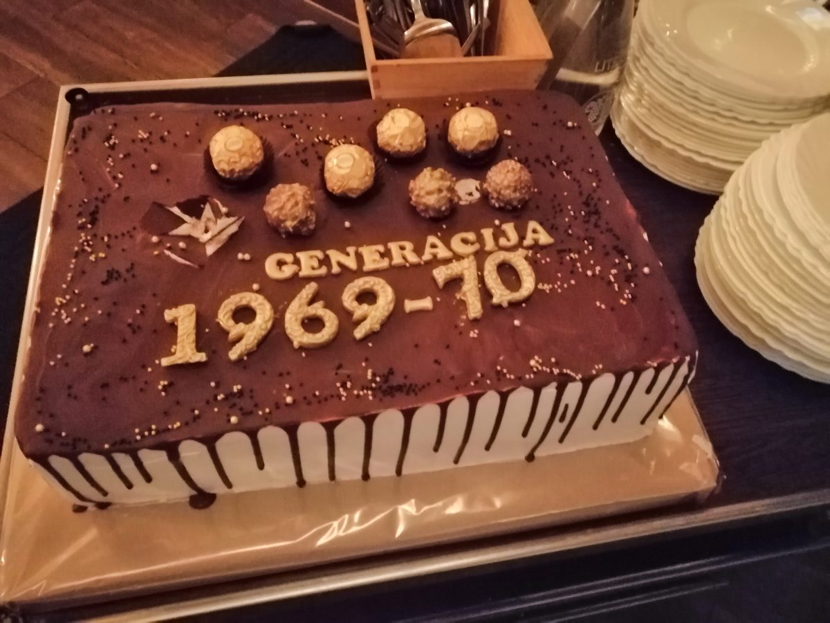 Vrhunac slavlja nastavio se u veoma ugodnom ambijentu Bajzovih dvora u Dekanovcu. Međusobni pozdravi uz osmijeh koji je krasio brojna lica, prebrojavanje generacije, prisutni, odsutni, bili su uvertira u slavljeničku večeru. Za slatki dio večere pobrinule su se Maričine slastice, prefini kolači i ukusna generacijska torta dodatno je zasladila večeru. Uz vrhunsku uslugu, ljubazno i nasmiješeno osoblje druženje je trajalo do ranih jutarnjih sati. Bilo je puno toga za prisjetiti se, ispričati, podijeliti s drugima…