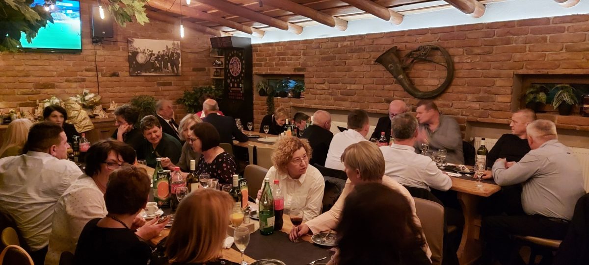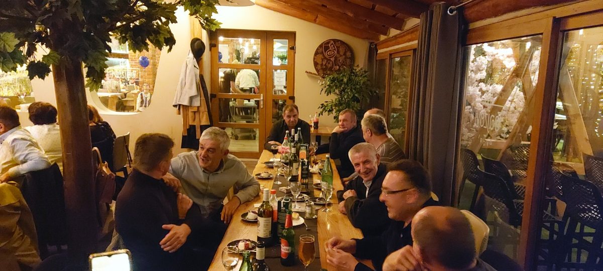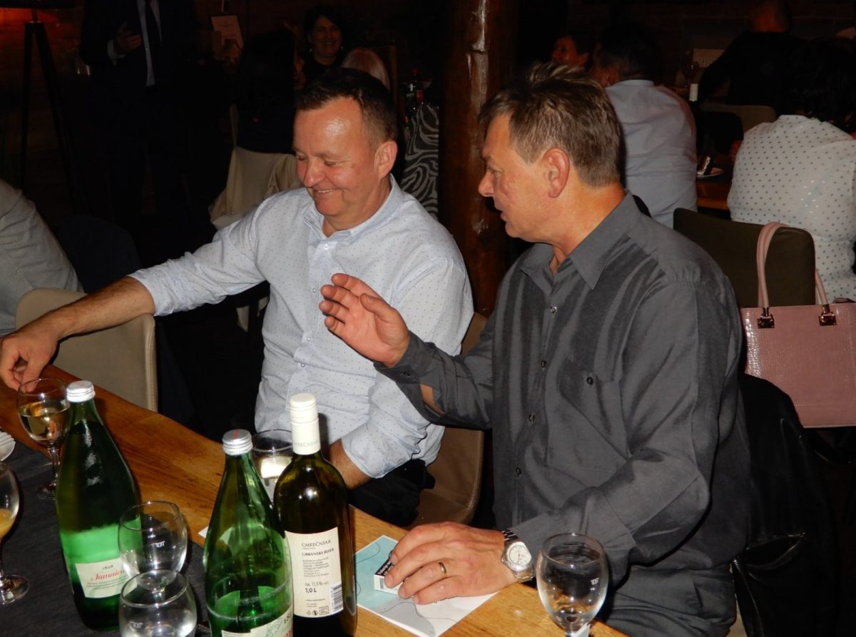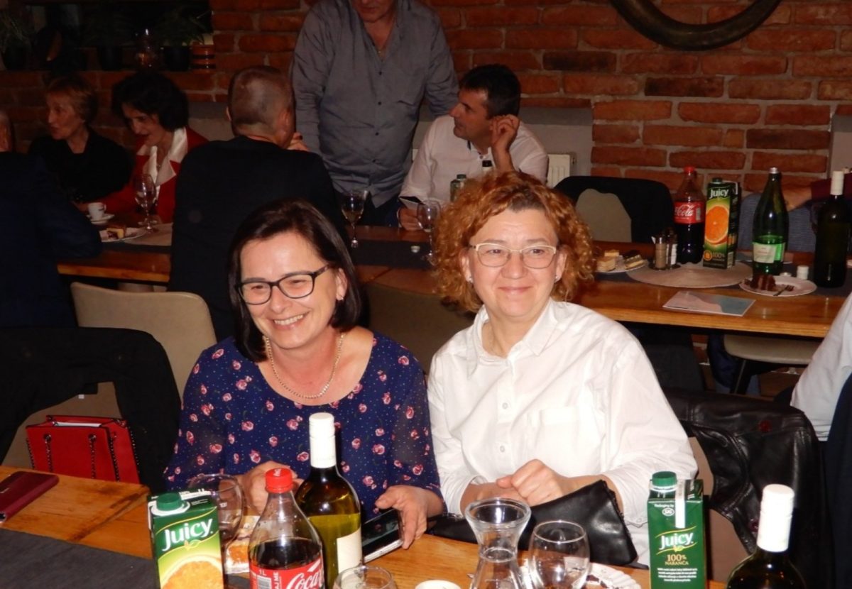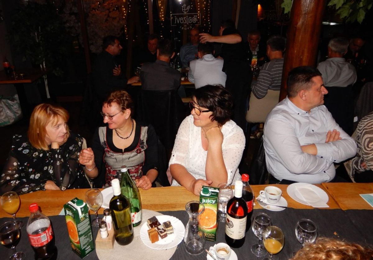 Vrhunac slavlja nastavio se u veoma ugodnom ambijentu Bajzovih dvora u Dekanovcu. Međusobni pozdravi uz osmijeh koji je krasio brojna lica, prebrojavanje generacije, prisutni, odsutni, bili su uvertira u slavljeničku večeru. Za slatki dio večere pobrinule su se Maričine slastice, prefini kolači i ukusna generacijska torta dodatno je zasladila večeru. Uz vrhunsku uslugu, ljubazno i nasmiješeno osoblje druženje je trajalo do ranih jutarnjih sati. Bilo je puno toga za prisjetiti se, ispričati, podijeliti s drugima…