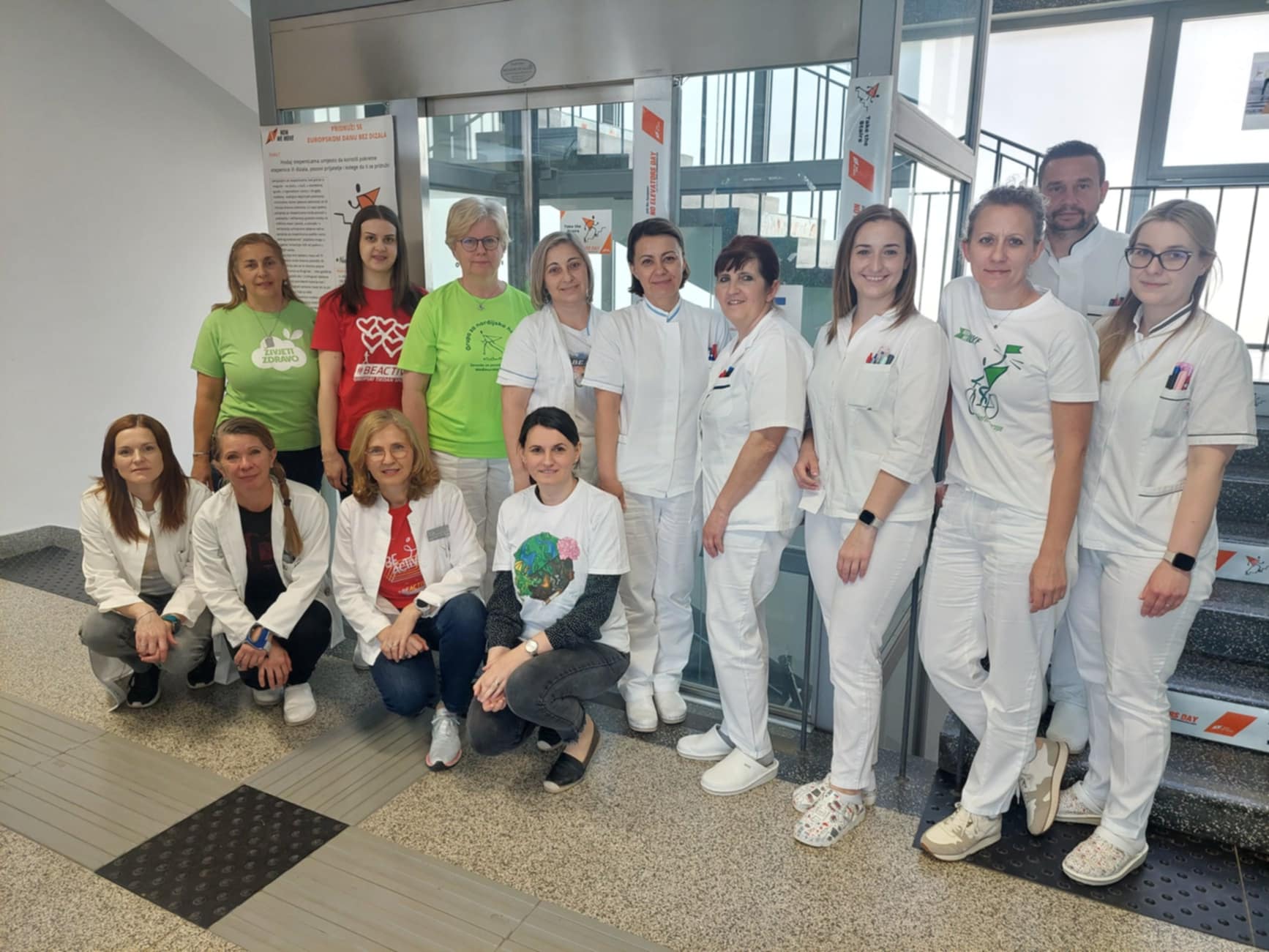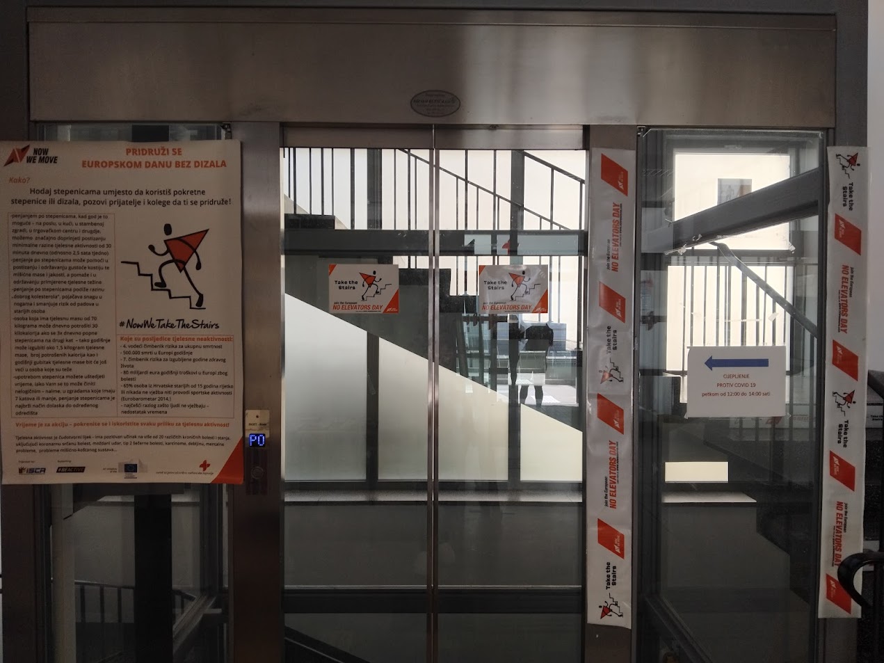 Za korisnike usluga Zavoda i slučajne prolaznike pripremljeni su edukativni i promotivni materijali, koje su prigodno stavili na stepenice i dizalo te su neke od njih motivirali da umjesto dizala koriste stepenice.