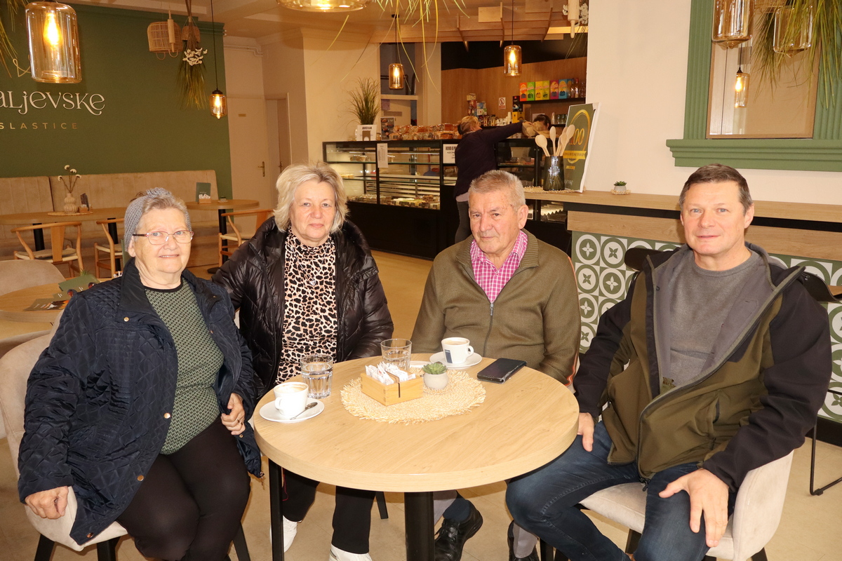 Prilikom nedavne akcije mjerenja krvnog tlaka i šećera u krvi u organizaciji Podružnice umirovljenika Donji Kraljevec, u obližnjoj slastičarnici (mogli bismo reći – prigodno!) sreli smo predsjednika te podružnice Franju Blažeka, tajnika Stanka Balenta, blagajnicu Zlatu Tota i članicu udruge Mariju Štefok.