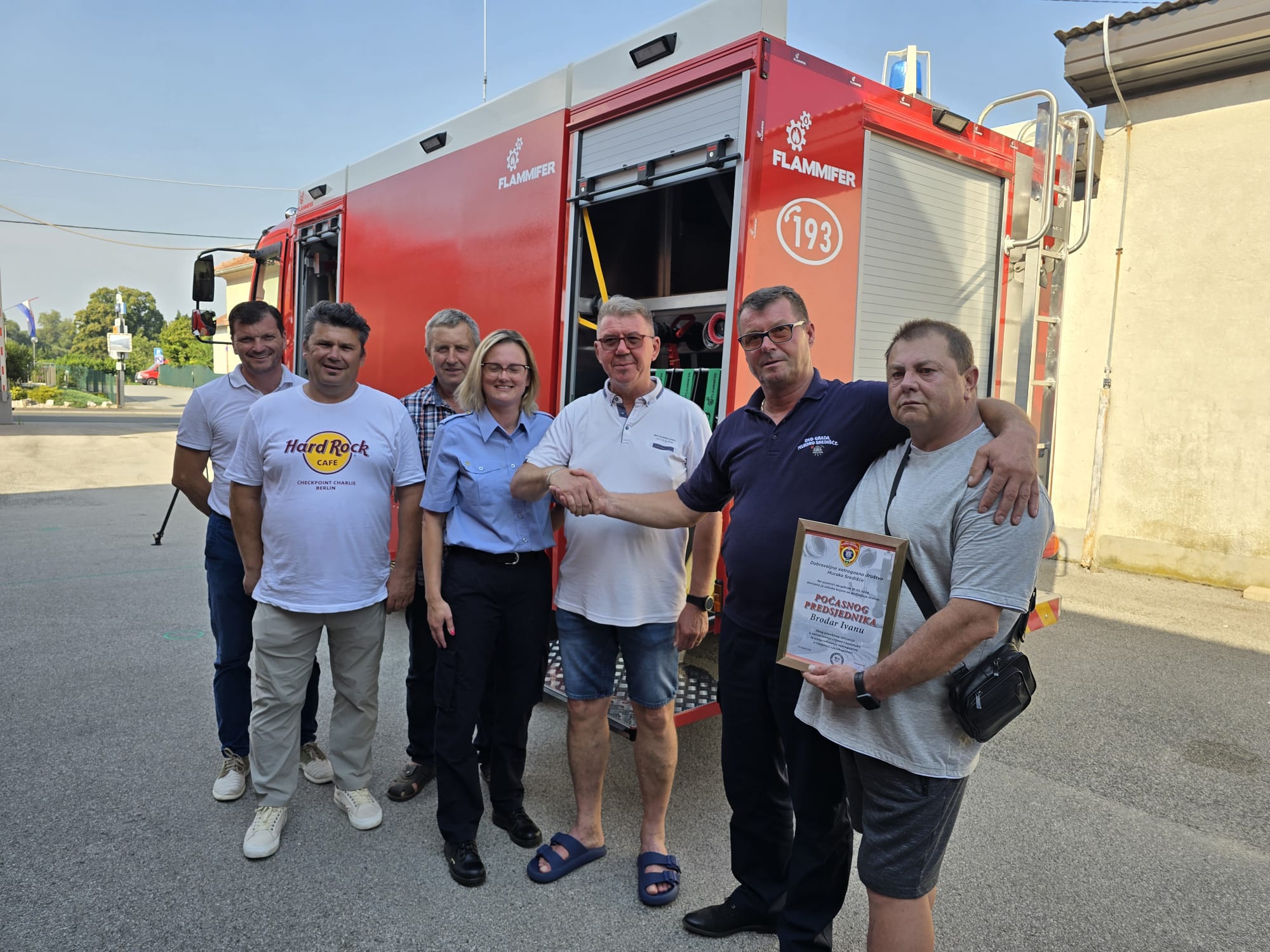 Gradonačelnik Dražen Srpak danas, 11. srpnja 2024. godine prisustvovao je potpisivanju Ugovora i svečanoj primopredaji autocisterne, a što se održalo u gradu Ozlju, u tvrtki Flammifer koja proizvodi takva vozila. Članovi DVD-a Mursko Središće preuzeli su autocisternu i rukovodit će istom, a isto tako su napravili obuku o načinu rada i korištenja autocisterne za što su dobili Uvjerenje.