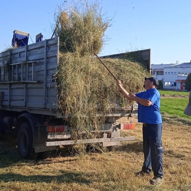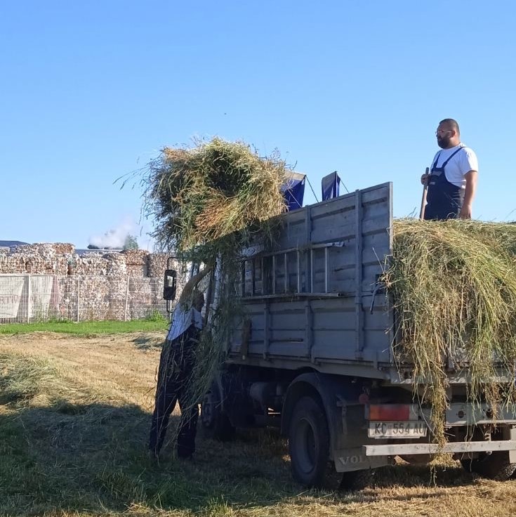 Naime, prije dva mjeseca na velikoj zelenoj površini u krugu tvornice Hartmann posijana je cvjetna livada te je posađena voćka metodom permakulture, a ‘posao’ su obavili zaposlenici Hartmanna i skupina Zmajići iz Dječjeg vrtića Igra. Kod sadnje je korišten kompost DomKo iz Kompostane Herešin, a prvi otkos trave obavljen je u lipnju tako da su kukci koji pridonose bioraznolikosti imali vremena razmnožiti se te oprašivati cvijeće koje raste na livadi. Travu su pokosili i sakupili zaposlenici Sektora zelenih površina Komunalca te u cijeli projekt uključili još jednog partnera – Udrugu za terapijsko jahanje Osmijeh koja provodi programe jahanja za osobe s invaliditetom, a koja će travu koristiti za svoje konje na imanju u Peterancu.