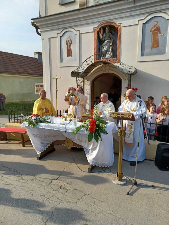 Uslijedila je svečana misa koju je predvodio križevački grkokatolički biskup Milan Stipić, koji je tom prilikom zahvalio Bogu na 200 godina kapele sv. Florijana, a ujedno se zahvalio i Općini Goričan, članovima Caritas Betanije, Crvenog križa te svim ostalim udrugama i volonterima s područja općine Goričan, ali i cijelog Međimurja, koji nesebično volontiraju na odmorištu za izbjegle osobe u restoranu Stara Mura na Graničnom prijelazu Goričan.