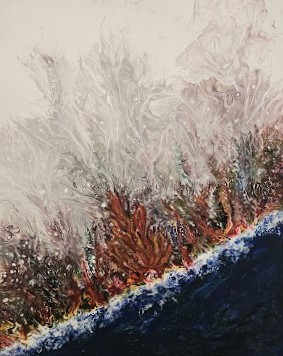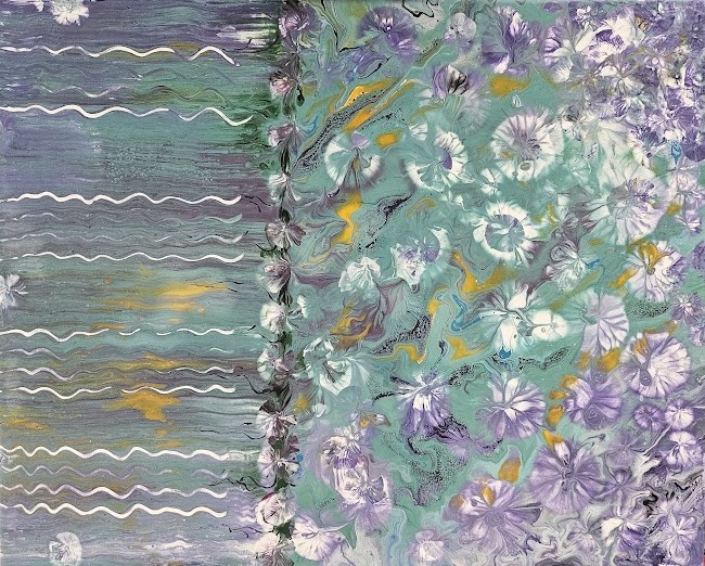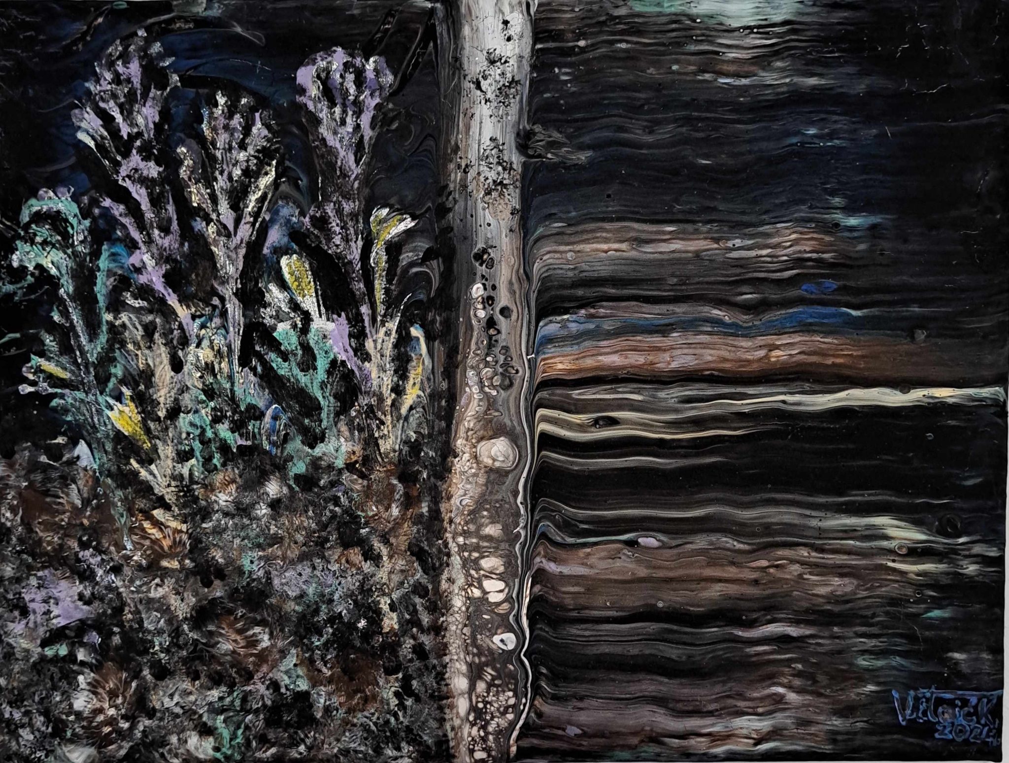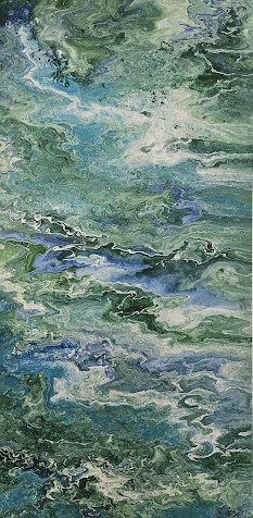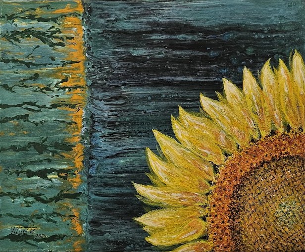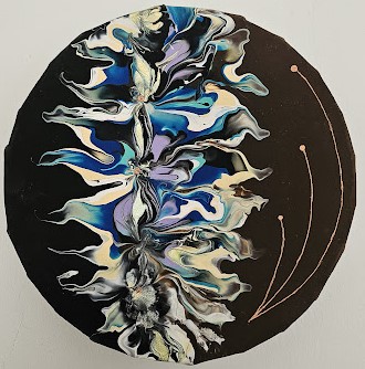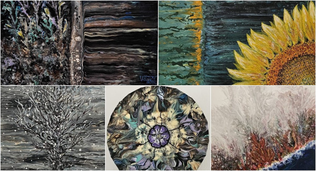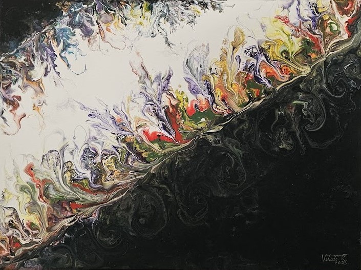 Karmela Vitaić, rodom iz Čakovca, u ovoj svojoj umjetničkoj fazi izričaja koristi fluidne pokrete nanošenja boje kako bi postigla savršen balans između kontrole i slučajnosti. Ova tehnika, poznata kao fluid art ili tehnika razlijevanja boja, zahtijeva precizno poznavanje boja i njihovih međusobnih reakcija. Rezultat su slike koje su jednako zavodljive zbog svoje slojevitosti koliko i zbog vizualne kompleksnosti.