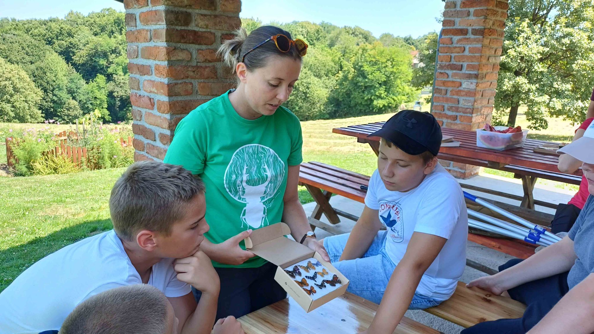 Djelatnica Međimurske prirode Sara Srša, savjetnica za opće poslove zaštite prirode provela je prirodoslovnu radionicu „Lov na leptire“ kroz koju su djeca upoznala dio svijeta leptira oko Matulova grunta i na okolnim livadama. Kipar motornom pilom Dario Horbec predstavio je svoj rad kroz zanimljivu pokaznu radionicu izrade kipova od drveta gdje su u vrlo kratkom vremenu od dva trupca nastali kipovi sove i leptira. Na kraju prvog dana kampa djelatnik Međimurske prirode Karlo Šafarić, stručni suradnik za edukaciju i interpretaciju provjerio je djeci razinu znanja kroz zanimljiv kviz pod nazivom „Zeleni kviz“.