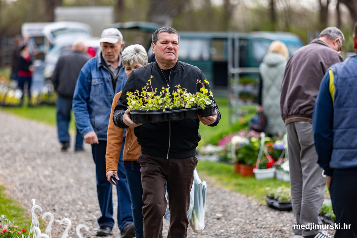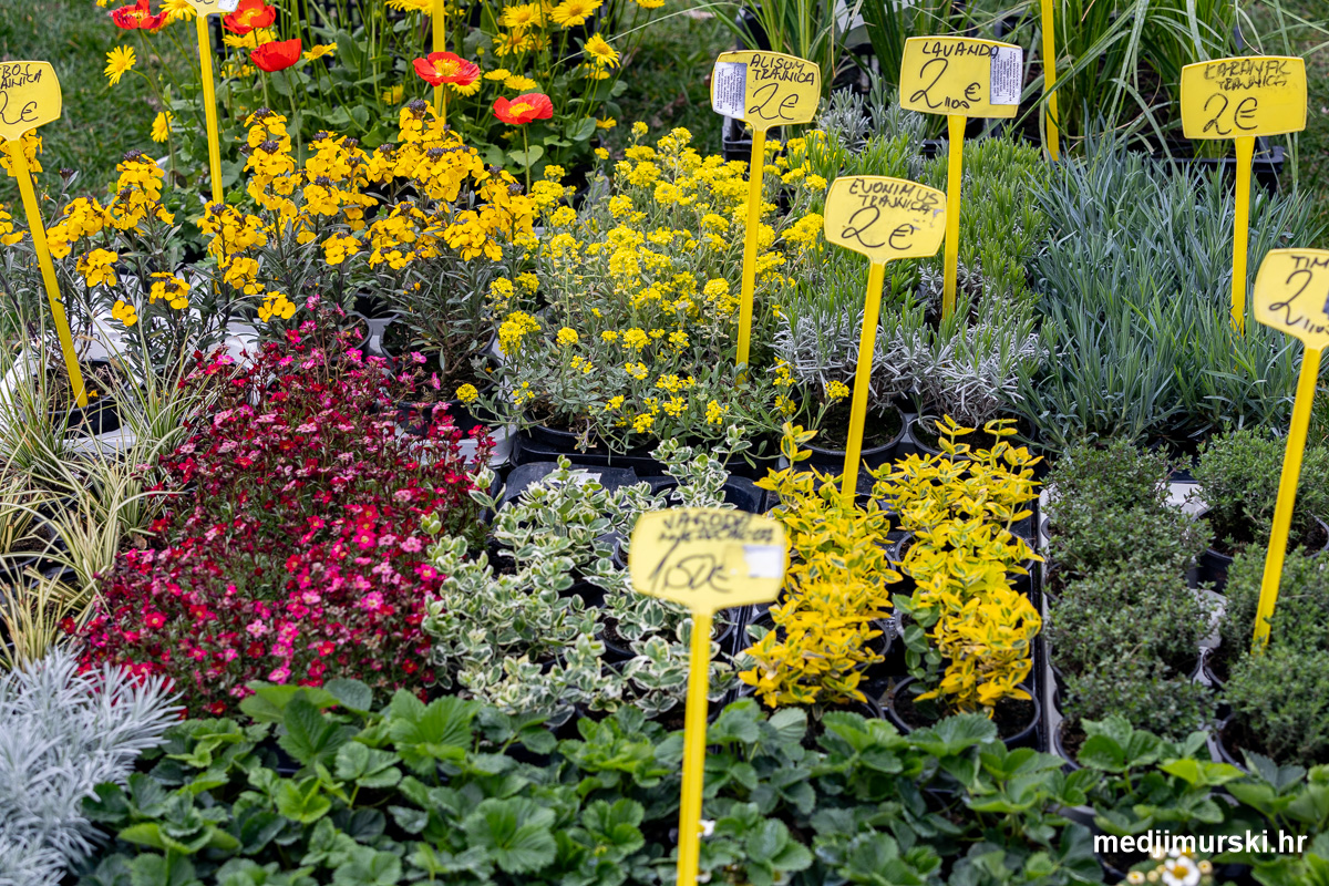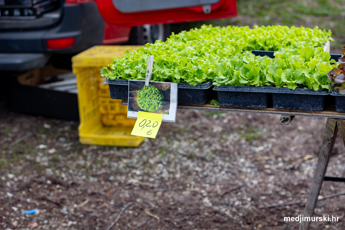 Lijepo, sunčano vrijeme izmamilo je na današnji čakovečki sajam srijedom dosta ljudi. U ponudi je bilo puno sadnica i presadnica svih vrsta: od voćnih do vinove loze., kao i presadnica cvijeća. Flanci zelene salate bili su po 0,20 eura komad.