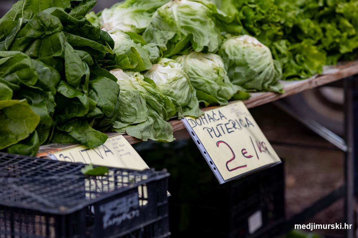 Šampinjoni su nuđeni po 4 eura kilogram, peršin po 3, a i zelena salata bila je 2 eura kilogram.