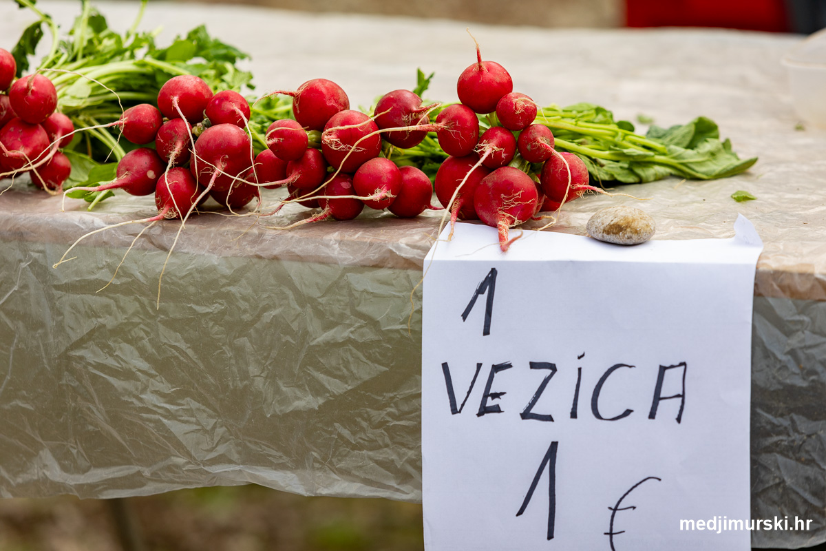 Najviše se kupovala rotkviceapo 1 euro vezica, kao i mladi luk također po 1 euro vezica. Jagode u posudici (oko pola kg) nuđene su po 3 eura.