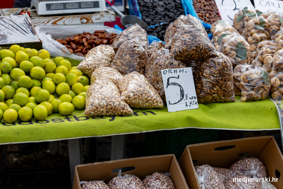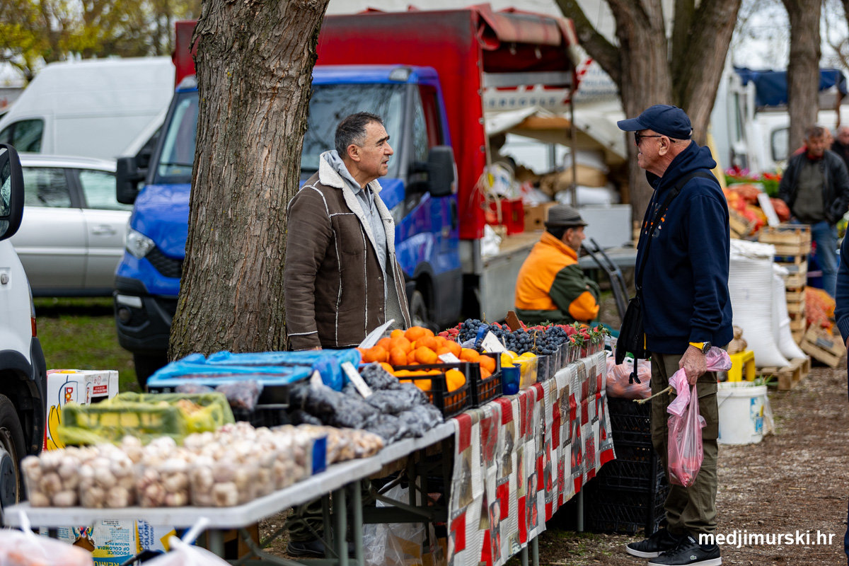 I ove srijede mirisala je ponudu mesnih prerađevinama: sušenog špeka, rebreca, karea, vratine i salamama, koje je donio prodavač iz Letenya u susjednoj Mađarskoj.