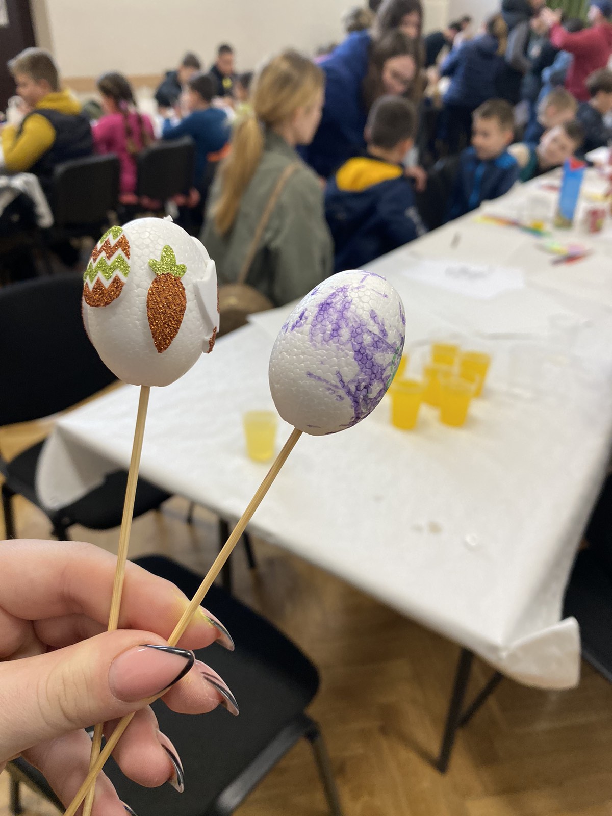 Događaju je prisustvovalo oko 70tak djece koja su prvo oko društvenog doma tražila sakrivena čokoladna jaja, a najbolji ih je našao čak 17. Za prva tri najbolja tragača pripremljene su bile i nagrade.