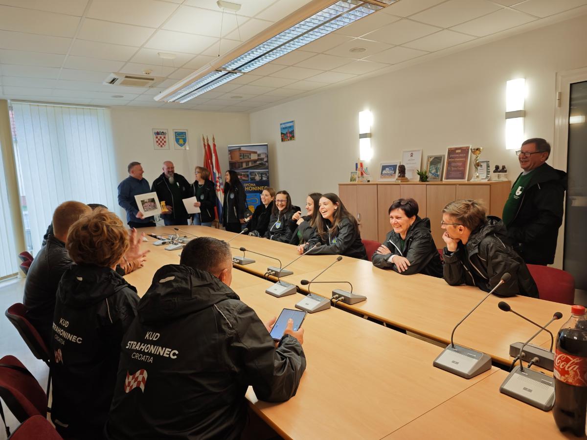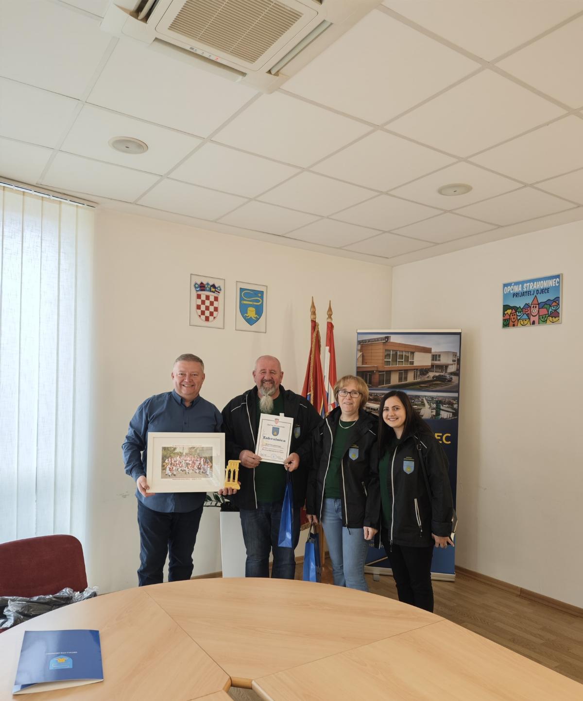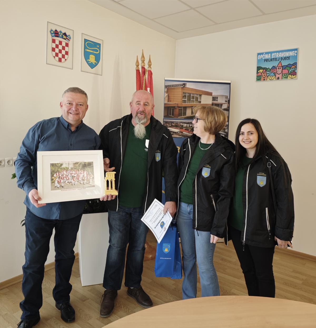 Načelnik Općine Strahoninec srdačno je primio članove društva, pohvalio njihov predan rad te istaknuo kako su na najbolji mogući način predstavili svoju zajednicu i Hrvatsku. U znak zahvalnosti i priznanja za njihov trud, predsjedniku KUD-a Strahoninec, Draganu Zdolcu, uručena je zahvalnica.