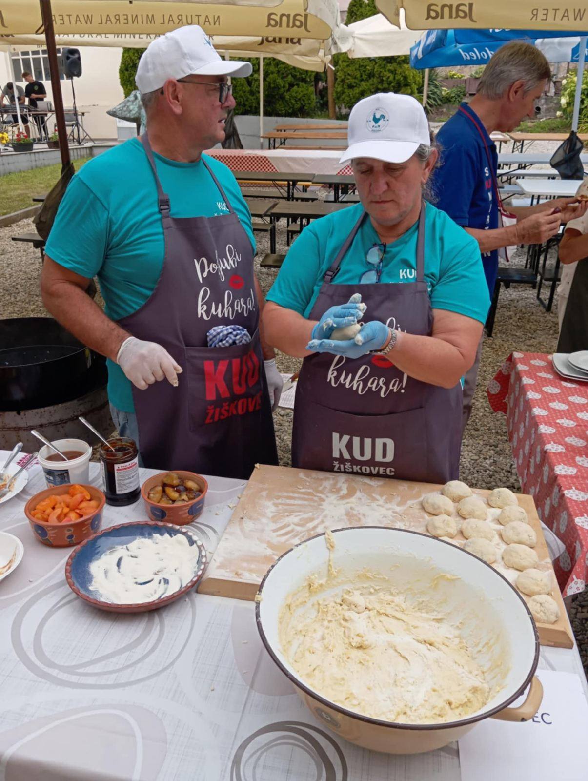 Jelo našeg podneblja pripremala je kulinarska ekipa KUD-a “Žiškovec” iz Žiškovca, Jagoda Srša i Ivan Kraljić. Pripremili su knedle od krumpirova tijesta s marelicama i šljivama. Njihov specijalitet bio je pripremljen “za prste polizati” pa stoga ne čudi što su namjernici tražili tanjur više, knedlu više.