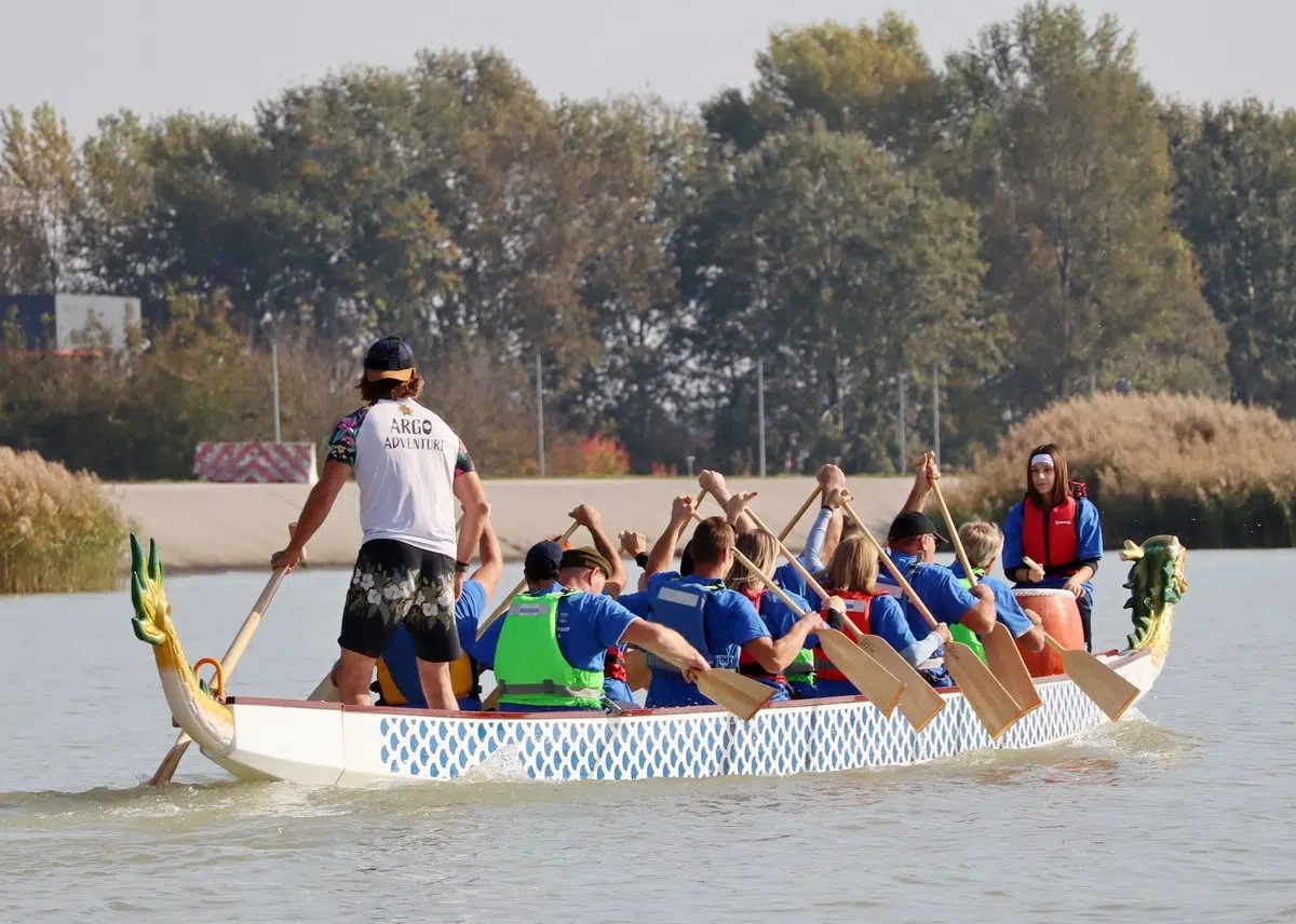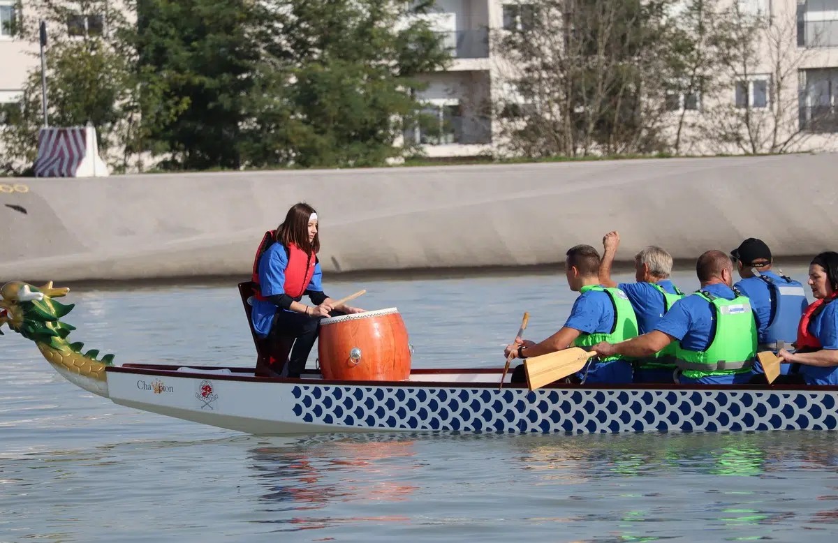 Naime, u natjecanju dragon (zmajskim) čamcima nalazi se 12 veslača, kormilar i bubnjar. Bubnjar je bila 12-godišnja djevojčica Marija Naranđa, voditelj tima bio je njezin otac i predsjednik NK Labud Mario Naranđa, dok je njegova supruga Anica Naranđa bila jedna od veslača, a kapetan ekipe bio je 68-godišnji Ivan Višnić!