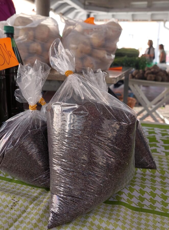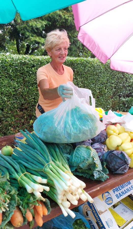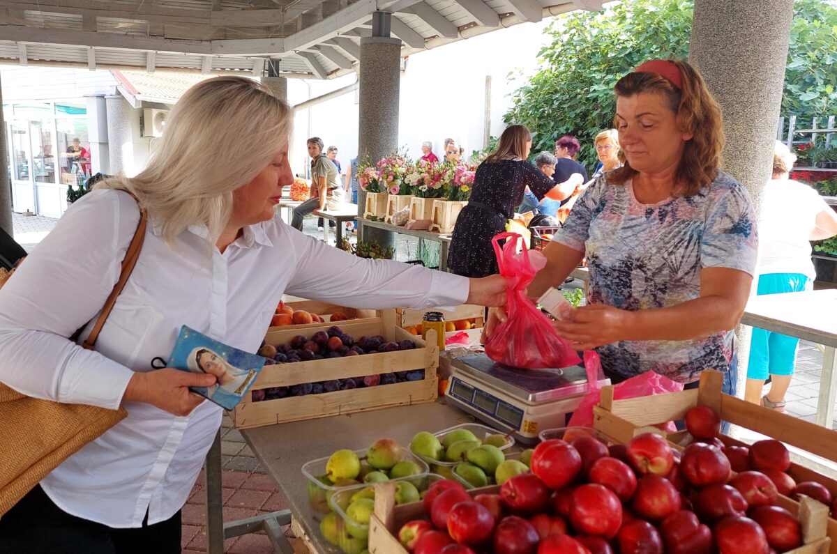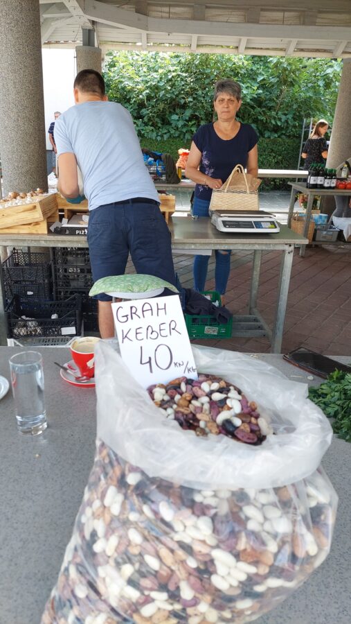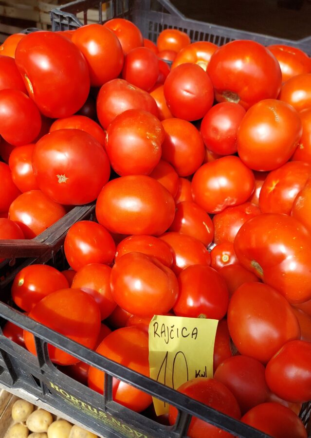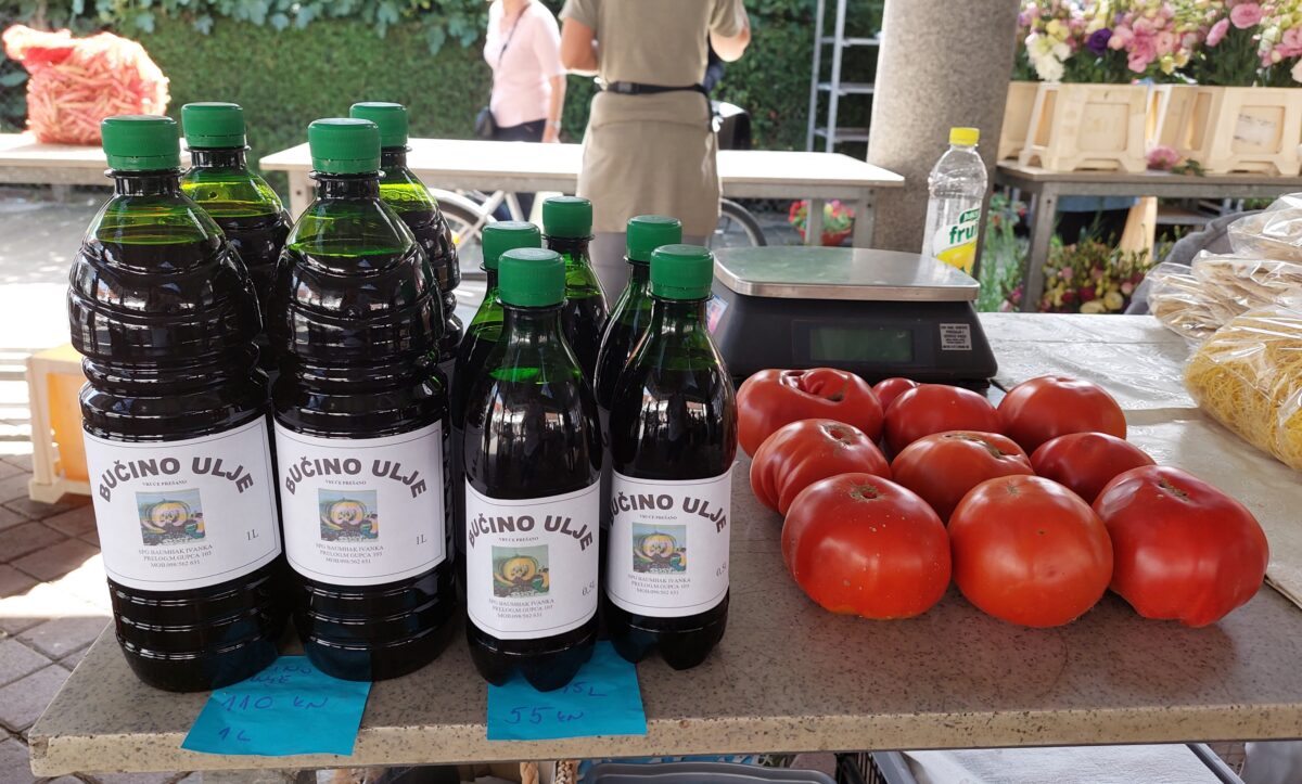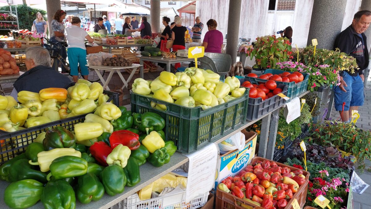 Od povrća, u ponudi su krumpir za 5 kn, cikla 7 kn, tikvice 5 kn, rajčica 10 kn, krastavci 10-12 kn po kilogramu. Grah keber košta 40 kn, dok grah u mahuni 15 kn po kilogramu. Tu su i bijeli (26 kn/kg) i smeđi šampinjoni (36 kn/kg), češnjak za 40 kn/kg, mak za 80 kn/kg, kukuruzno brašno za 10kn/kg, kilogram meda od 60 do 70 kn, bučino ulje od 80 do 110 kn po litri te rezanci i razna tjestenina čija je cijena 13 kn za 350 grama.