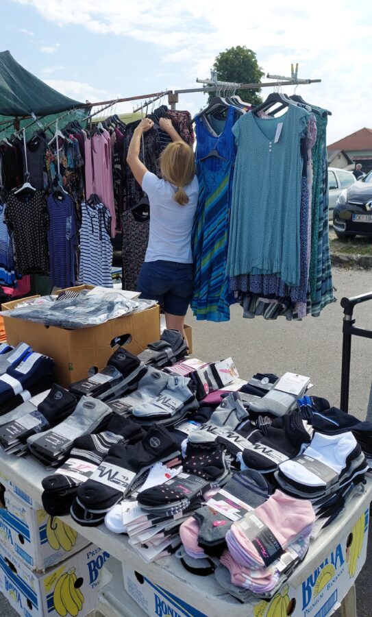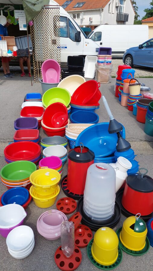 Napokon, uz velik asortiman kućanskih potrepština od drva ili plastike, kao i lampiona, čija se cijena kreće od 7 do 65 kuna, ovdje ćete pronaći i raznorazne grudnjake (40-60 kn), ženska gaće (10—40 kn), muške bokserice (20-30 kn) te spavaćice od 60 do 100 kn. Cijena glavne stvari bez koje ne možete na sunce – šešira ili kapa – iznosi 40-60 kn, sandala 120-150kn, natikača 30-60 kn i kroksica od 40 do 50 kn.