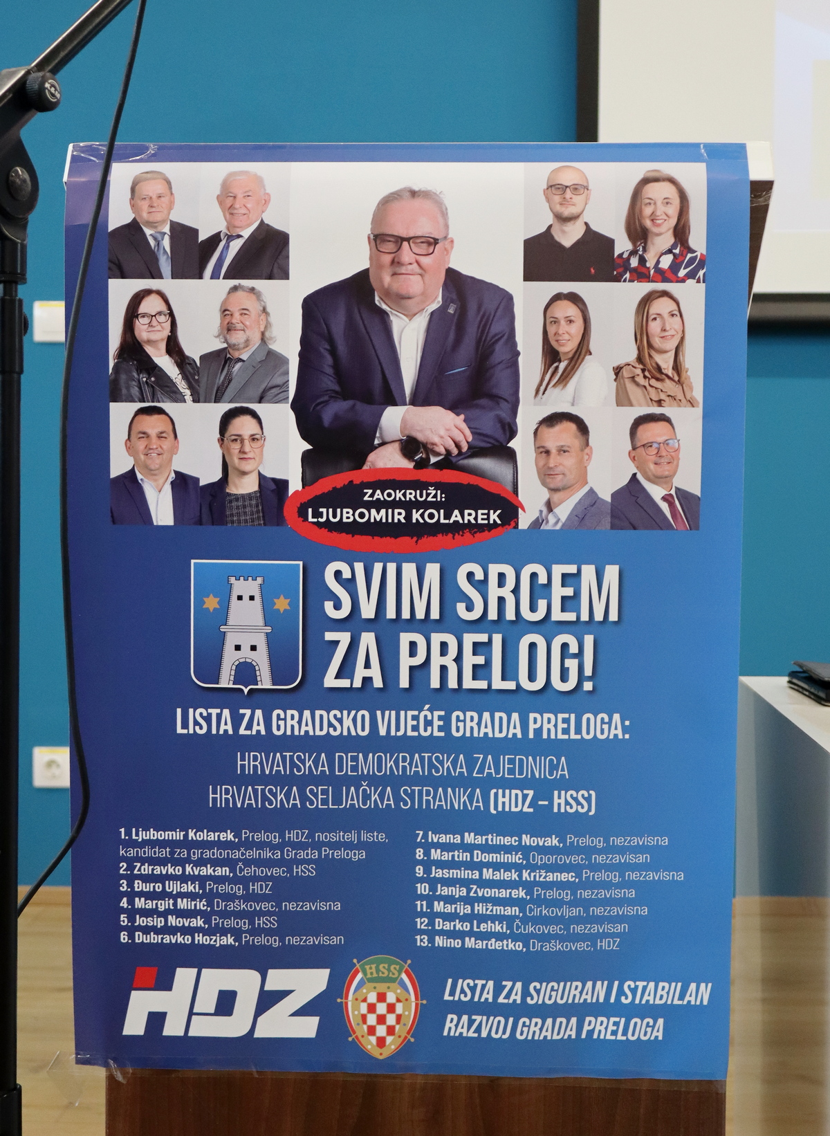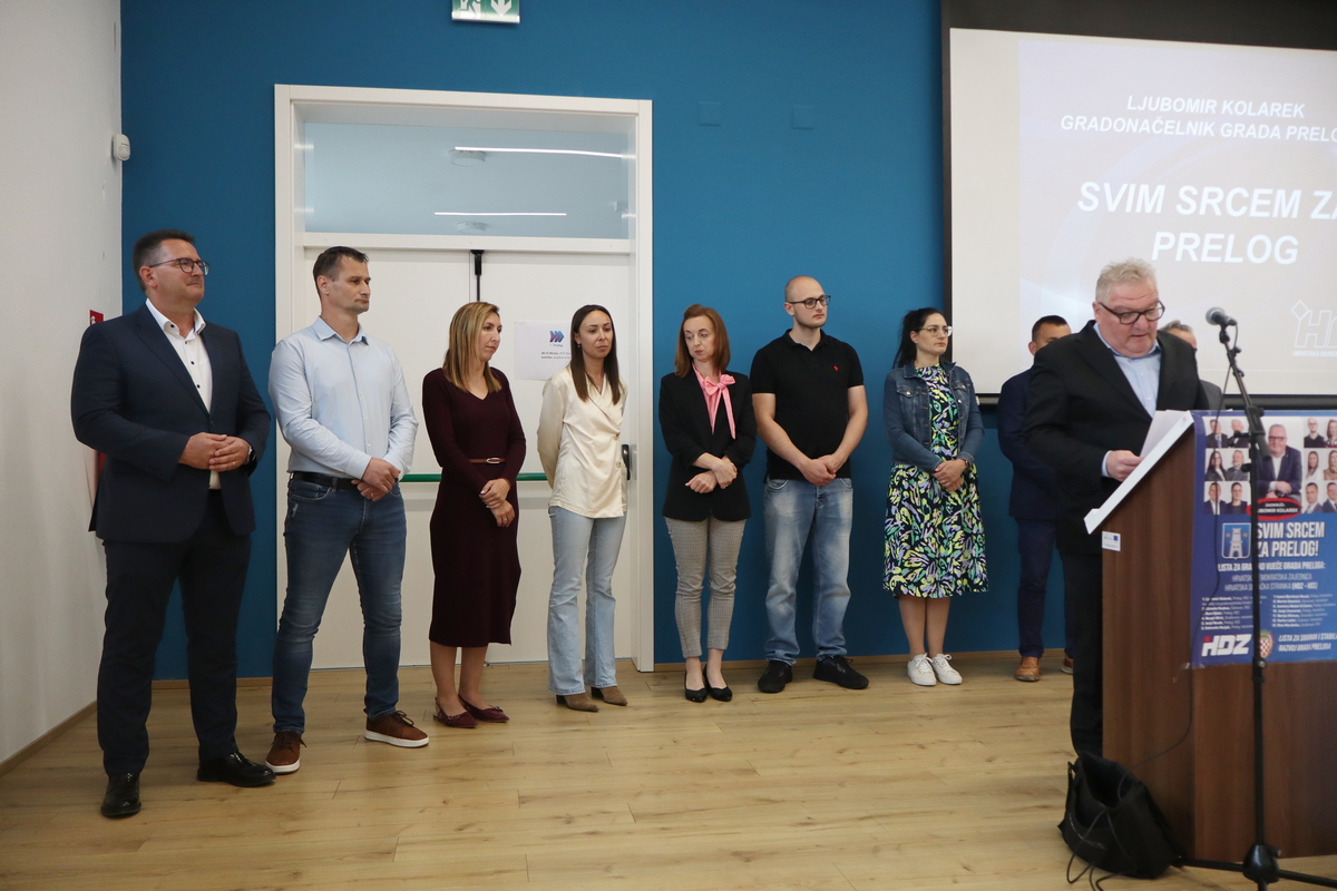 Uz Ljubomira Kolareka iz HDZ-a, na listi kandidata za vijećnike Gradskog vijeća Grada Preloga nalazi se još 12 kandidata, koje je ovom prilikom Kolarek i predstavio, opisujući za svakoga čime se bavi, ima li obitelj i na koje načine je aktivan u zajednici. To su društveno angažirani i ambiciozni muškarci te žene, majke i u zajednici izrazito angažirane kandidatkinje.