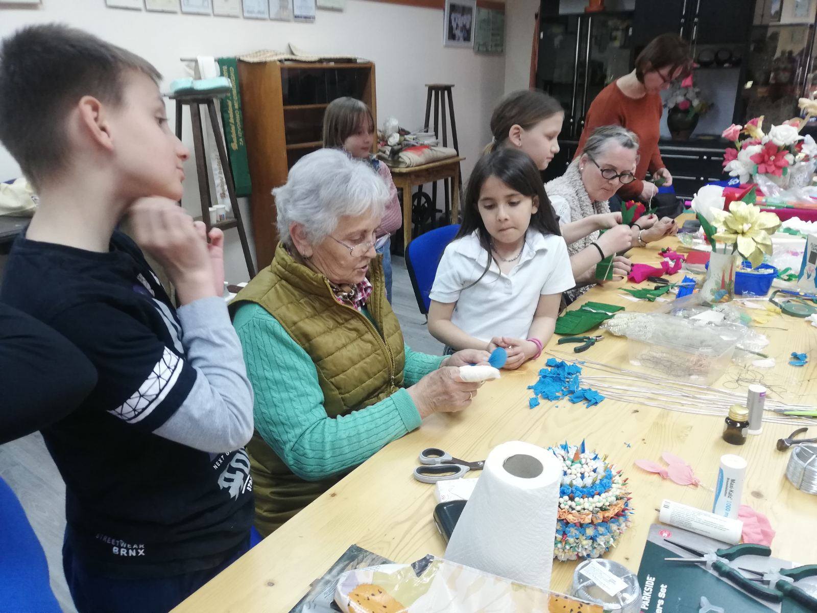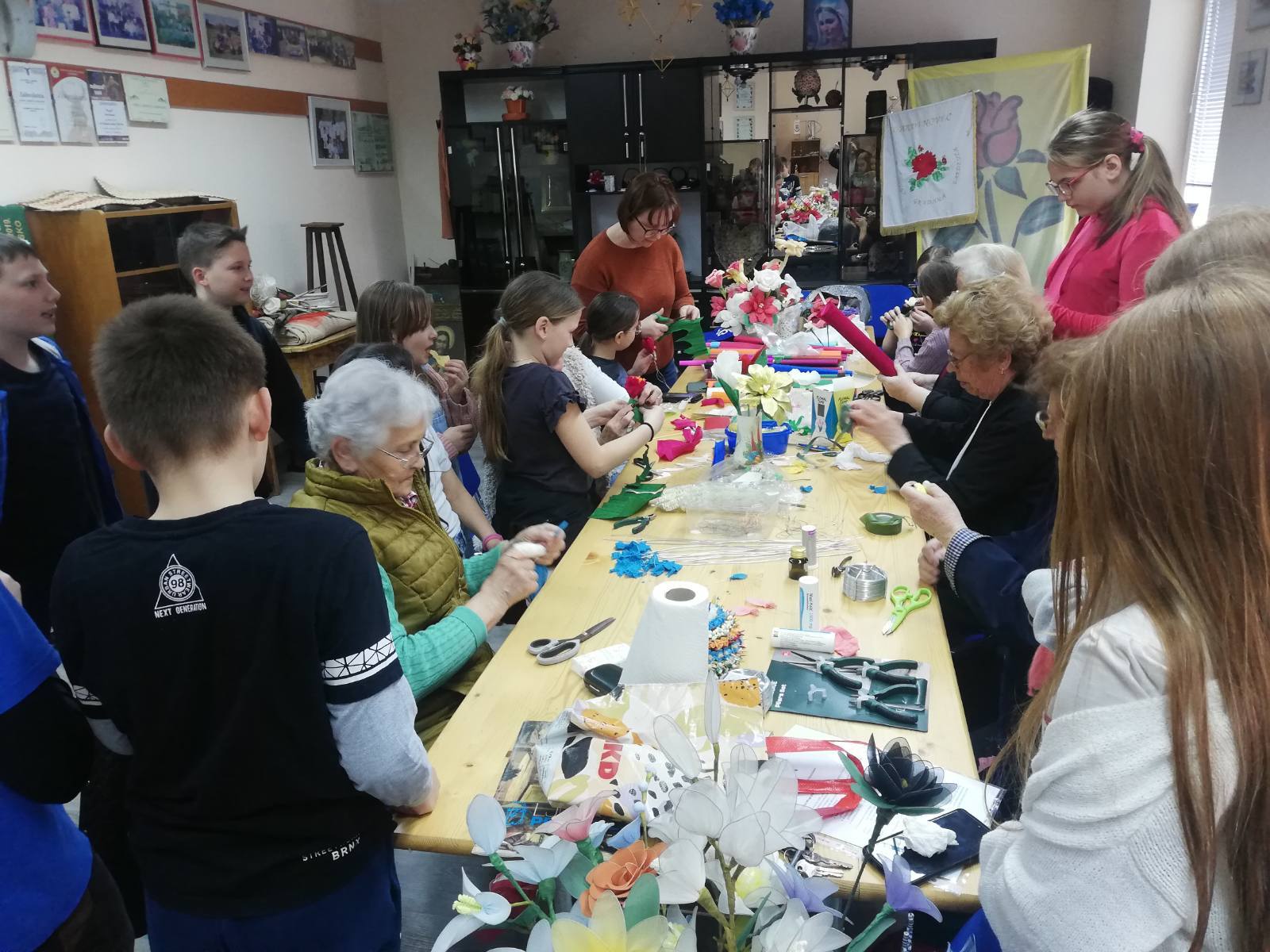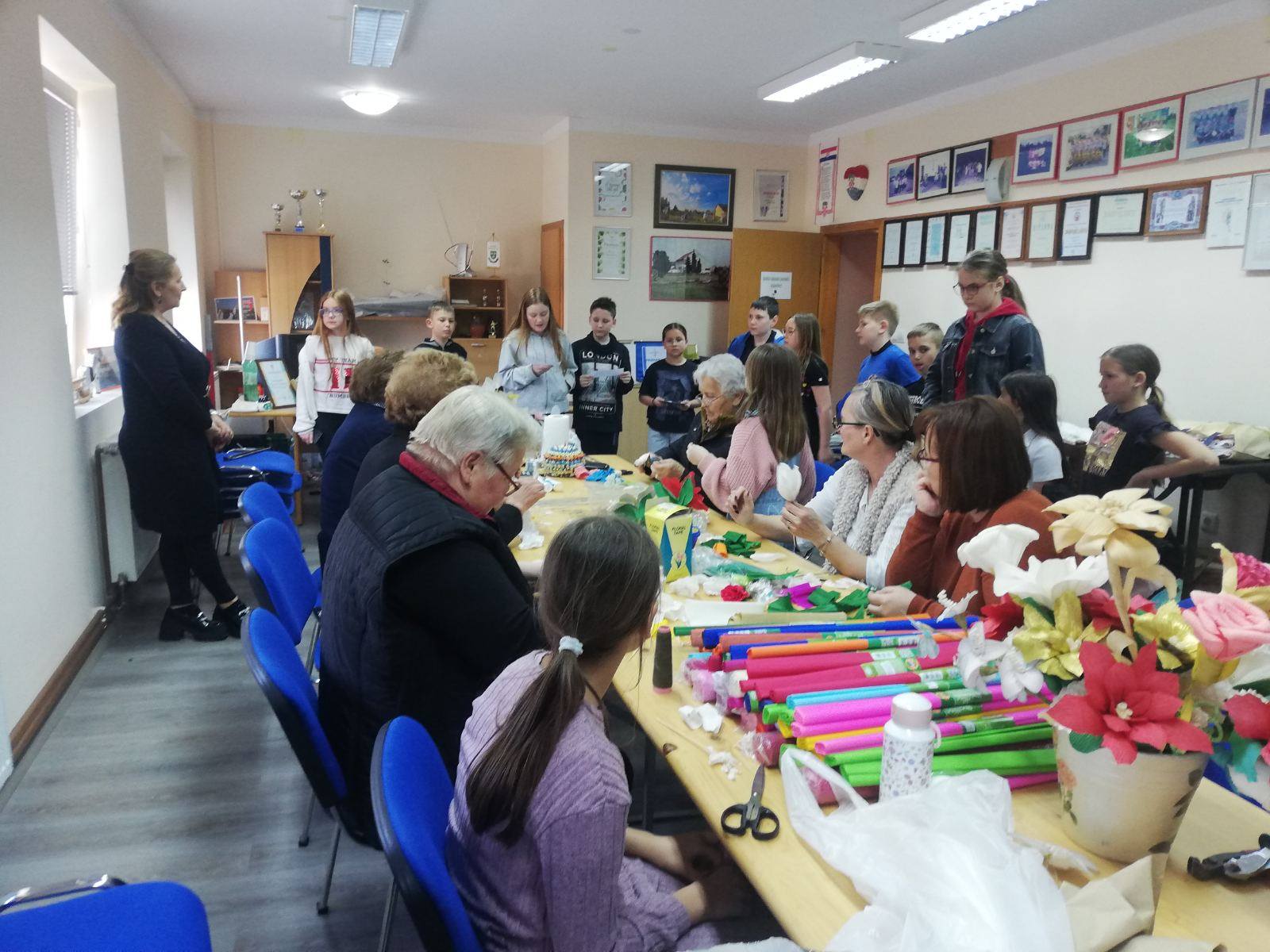 Tijekom susreta, članice Udruge su djeci demonstrirale kako se izrađuje cvijeće od krep papira – vještinu koju su nekoć svakodnevno koristile naše bake i prabake. Učenici su s velikim zanimanjem pratili svaki korak, a potom se i sami okušali u izradi vlastitih papirnatih cvjetova.