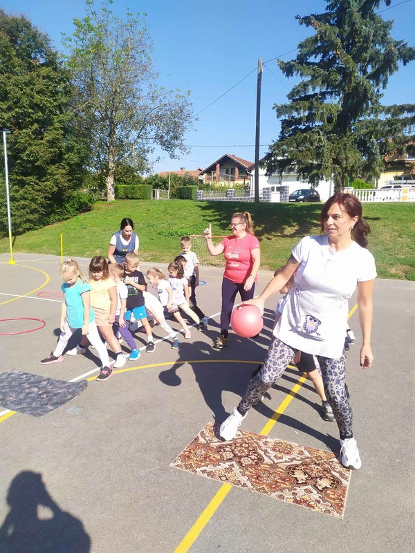 U četvrti dan obilježavanja Europskog tjedna sporta uključili su se mališani DV „Maslačak“ – skupina „Suncokreti“ Podružnice Peklenica. Dvadesetak mališana uz početno zagrijavanje sudjelovalo je u rekreativnim igrama, tunel, pogodi gol, pucanje sedmeraca, zeko skok, vođenje lopte rukom i sakupi što više lopti.