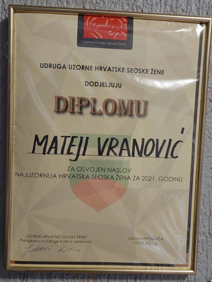 Mateja voli i kuhati i peći torte i kolače, a prava je majstorica i u izradi međimurske gibanice, koju je nedavno nosila i na skupštinu udruge Uzorne seoske žene. Mateja je u međuvremenu postala i predsjednica Udruge međimurskih uzgajivača Holstein goveda, a članica je i Upravnog odbora Hrvatske poljoprivredne komore te članica udruge Žene poduzetnice Međimurja, udruge građana Gardruža, udruge sirara Sir Cro, sudjeluje u humanitarnim akcijama te kao uzorna žena u narodnoj nošnji predstavlja Gradinovec, svojih ruku djela i tradiciju Međimurja na raznim manifestacijama i izložbama. Bravo, Mateja!