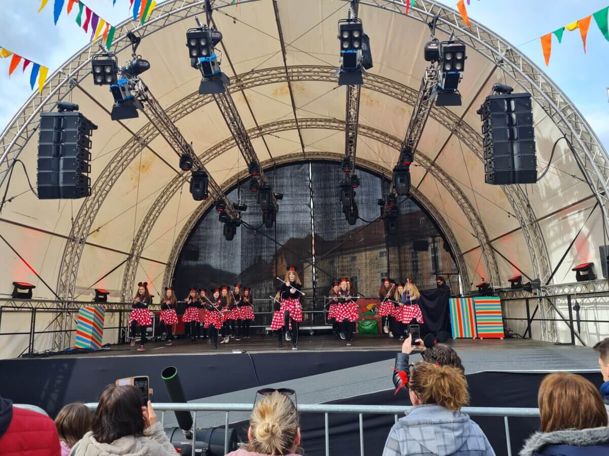 Atraktivne i brojne mažoretkinje su predstavile svoju masku rasplesanih mažoret mišica i koreografije različitih sastava, a ovo je bilo već drugo gostovanje na Samoborskom fašniku.