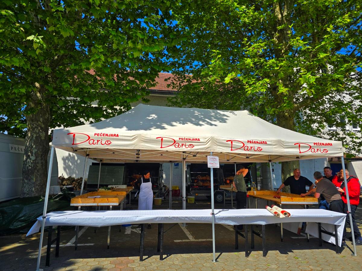 Već od ranih jutarnjih sati, miris pečenja širi se od općinskog dvorišta kod nogometnog igralištu, mameći i slučajne prolaznike i one koji su stigli s namjerom. Za to su zaslužni majstori iz Pečenjare Dario, koji neumorno okreću odojke, janjce, piceke i patke – sve što jedno pravo međimursko slavlje treba imati.