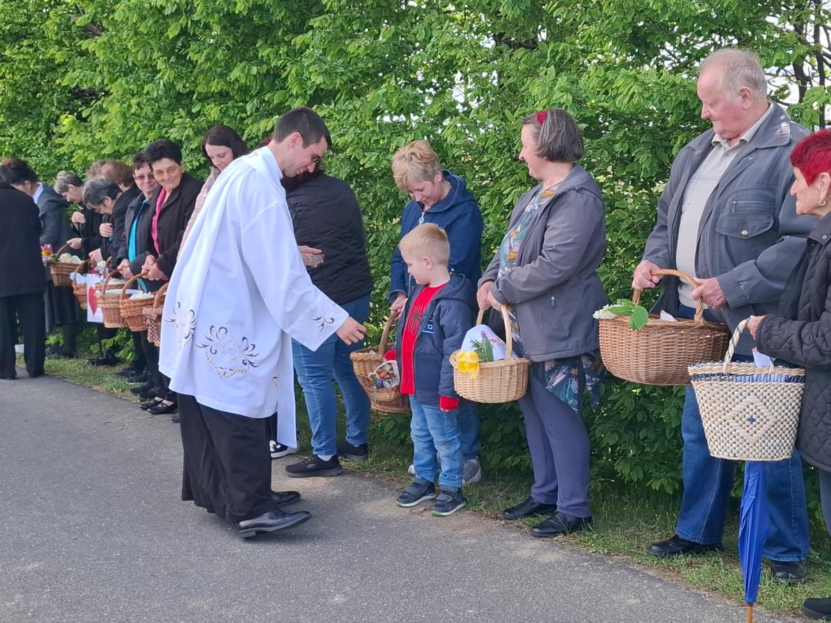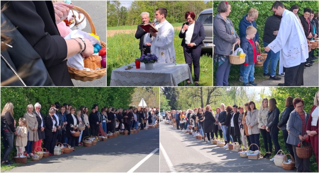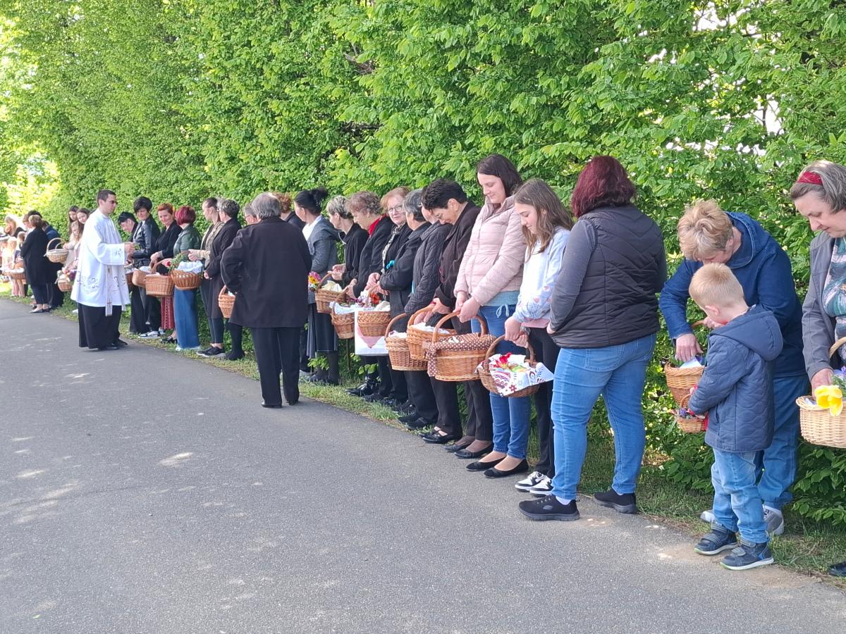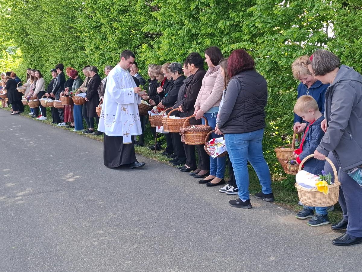 Košarice su bile ispunjene pravim uskrsnim delicijama: šunkom, kobasicama, jajima, mladim lukom, kruhom, kolačima i vinom, koje je blagoslovio župnik župe Svete Katarine djevice i mučenice iz Gornjeg Mihaljevca, velečasni Filip Jakupec.