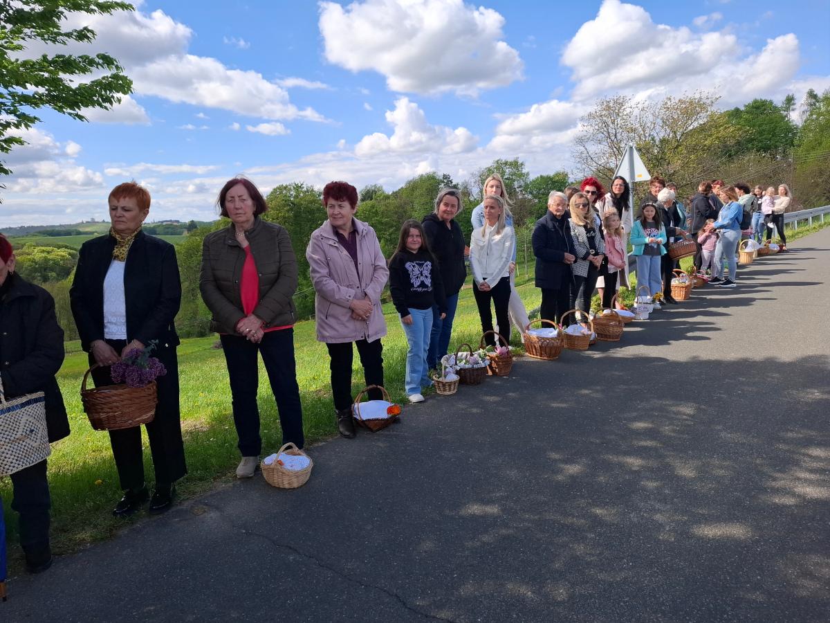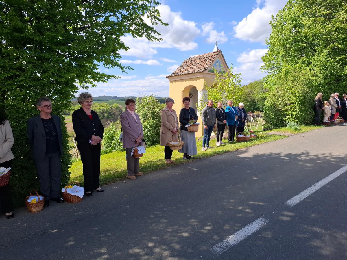 Vukanovec, 19. travnja 2025. Ni snažan vjetar koji je pratio Uskrsni obred blagoslova jela i pića nije omeo mještane Vukanovca, Vugrišinca i okolnih sela da sa svojim košaricama pristignu na tradicionalni blagoslov.