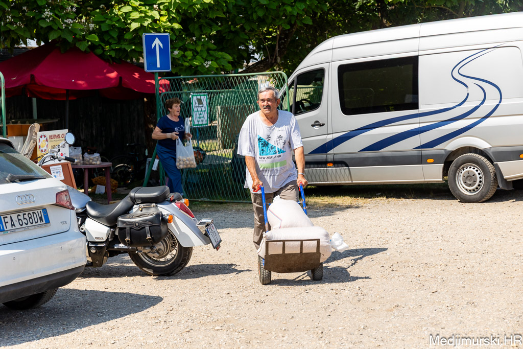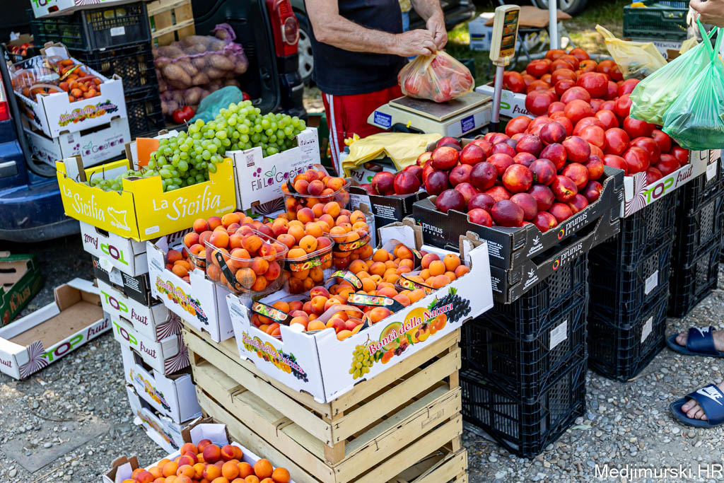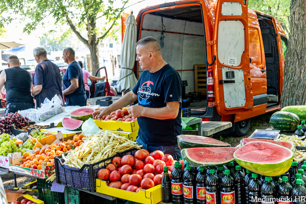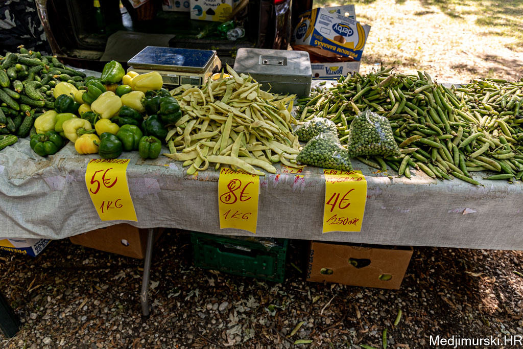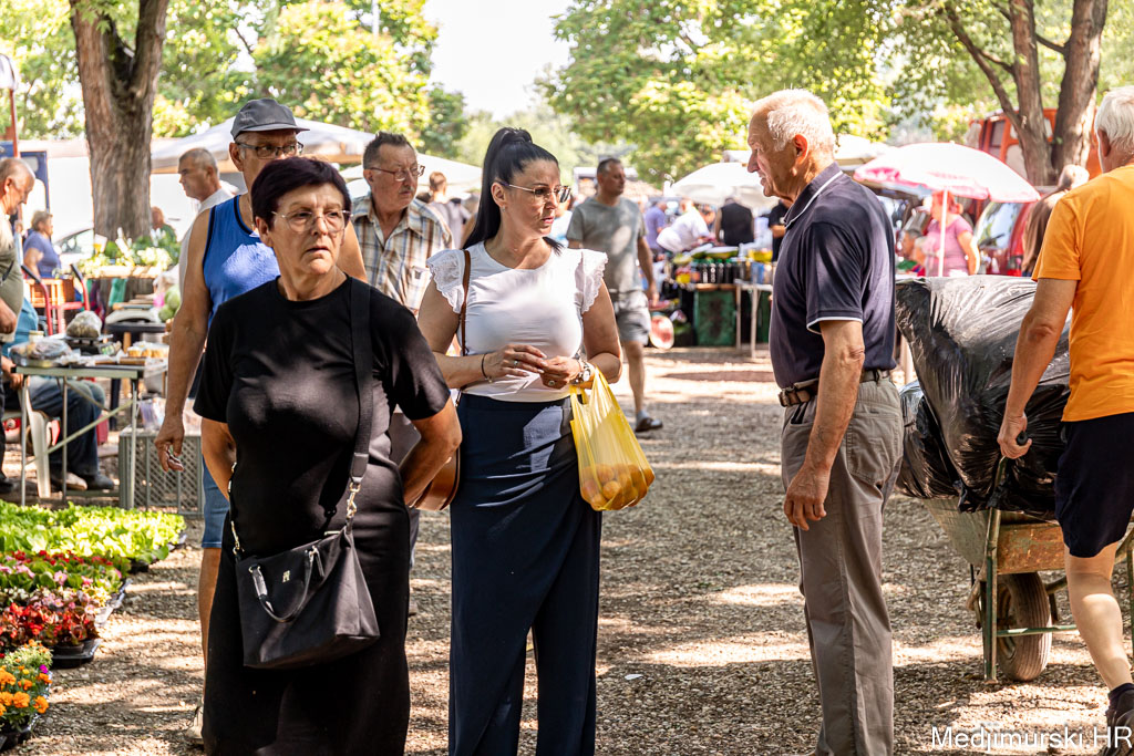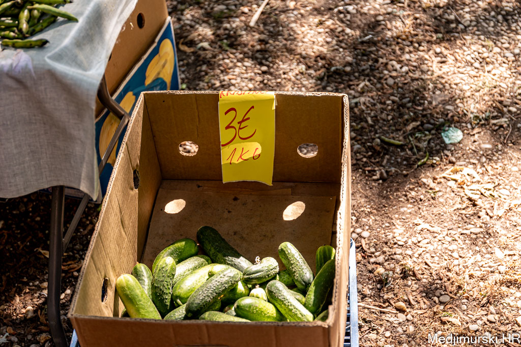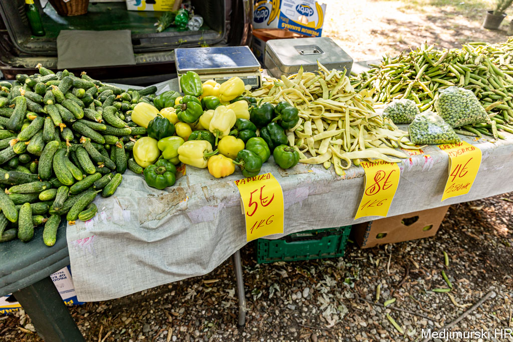 Na čakovečkom sajmu srijedom danas je bilo puno kupaca, ali i prodavača. Temperatura oko 30 stupnjeva Celzijusa nije ni jednima ni drugima smetala u trgovanju. Kupce su više zabrinjavale visoke cijene pojedinih proizvoda. Tako je paprika različite veličine, boje i sorte, ne baš lijepa, bila po 5 eura kilogram, a krastavci srednje veličine nuđeni su čak po 6 eura kilogram. Istina, bilo je i onih slabije kvalitete po 2 eura kg. Češnjak je prodavan čak po 8 eura kilogram, a mladi luk 3,5 eura kg.