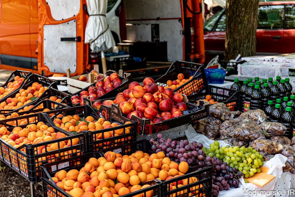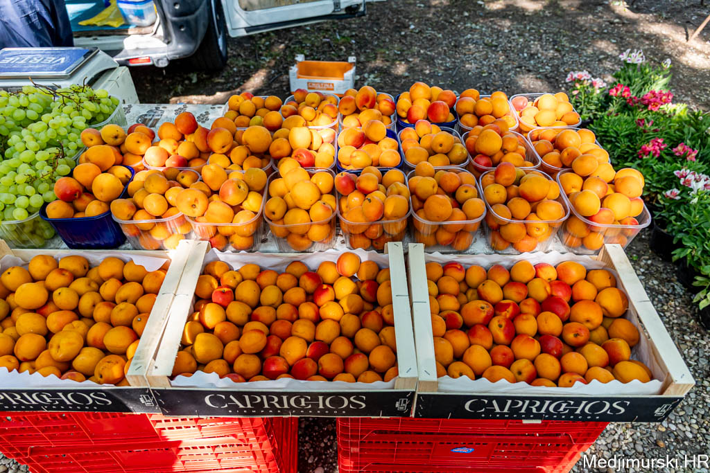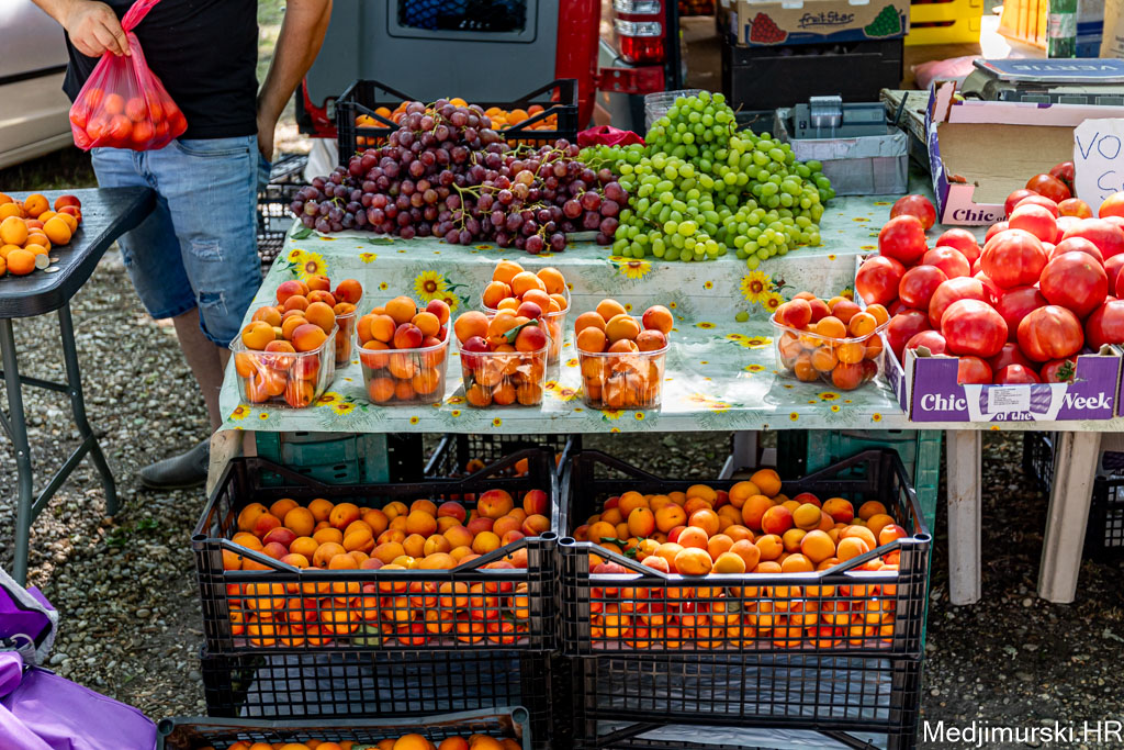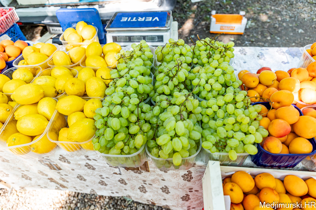 Jabuke su nuđene od 1 do 1,50 eura kilogram, limun po 3, grožđe po 4, kruške citronke po 3, datulje i suhe šljive po 5 eura kg, a suhe smokve po 5 eura kilogram. Marelice su nuđene po 5 eura kg, breskve po 4 eura kg, a lubenice po 1,5 eura kilogram.