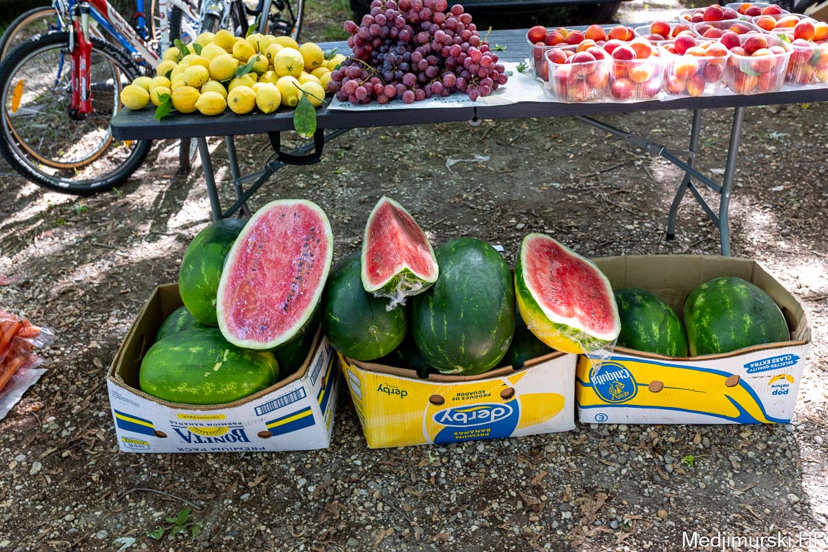 Jabuke su bile od 1 do 1,50 eura kilogram, limun po 3, grožđe po 4, kruške citronke po 3, datulje i suhe šljive po 5 eura kg, a suhe smokve po 5 eura kilogram. Marelice su nuđene po 5 eura kg, breskve po 4 eura kg, a lubenice od 3 i do 5 eura kilogram.