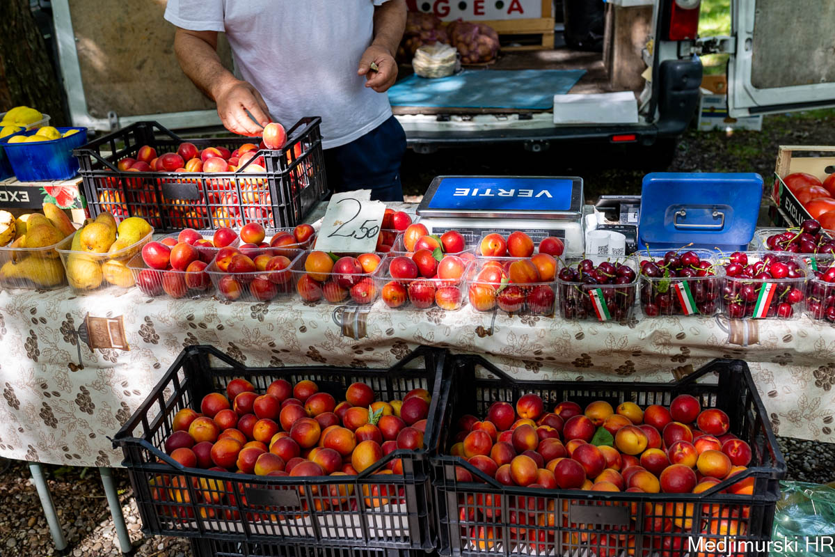 Trešnje su nuđene od 10 do 15 eura kilogram. Žute mahune bile su po 10 eura kilogram, grašak u ljusci 6 eura kg, a očišćen 16 eura kilogram. Pojavio se i mladi grah: 8 eura kg neočišćenog.
