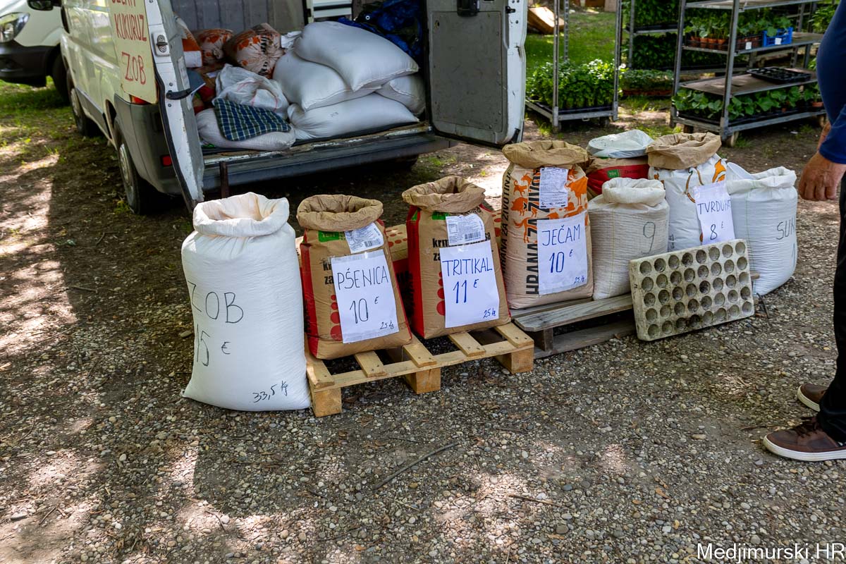 Odlična je bila i ponuda žitarica. Tako je 33,5 kg zobi prodavano po 15 eura, 25 kg pšenice po 10 euraa, tritikala 25 kg po 11 eura, ječma 25 kg po 10 eura i kukuruza 25 kg po 9 eura.