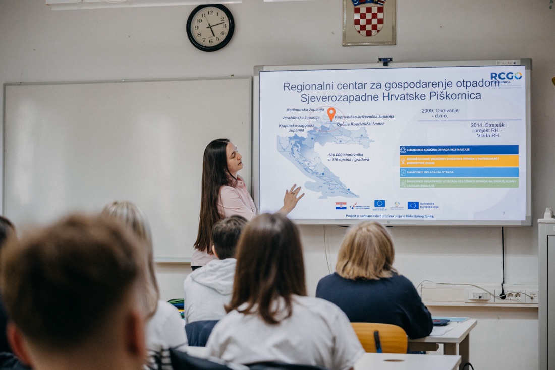 Srednjoškolci su kroz interaktivna predavanja, praktične zadatke i rasprave učili o tome što znači živjeti održivo, zašto nije svejedno kamo bacimo, primjerice, staru bateriju, i koliko je važno odgovorno odvajati otpad već na mjestu njegova nastanka. Naučili su da pravilnim odvajanjem sami odlučuju o budućnosti otpada, pri čemu će samo manji, neiskoristivi dio, nakon obrade i reciklaže, završavati u Regionalnom centru za gospodarenje otpadom Piškornica, koji će od 2027. godine služiti kao moderna podrška sustavu gospodarenja otpadom u sjeverozapadnoj Hrvatskoj.