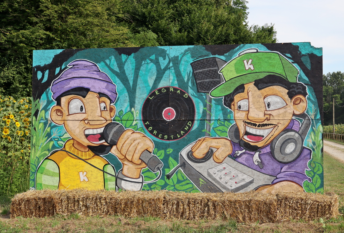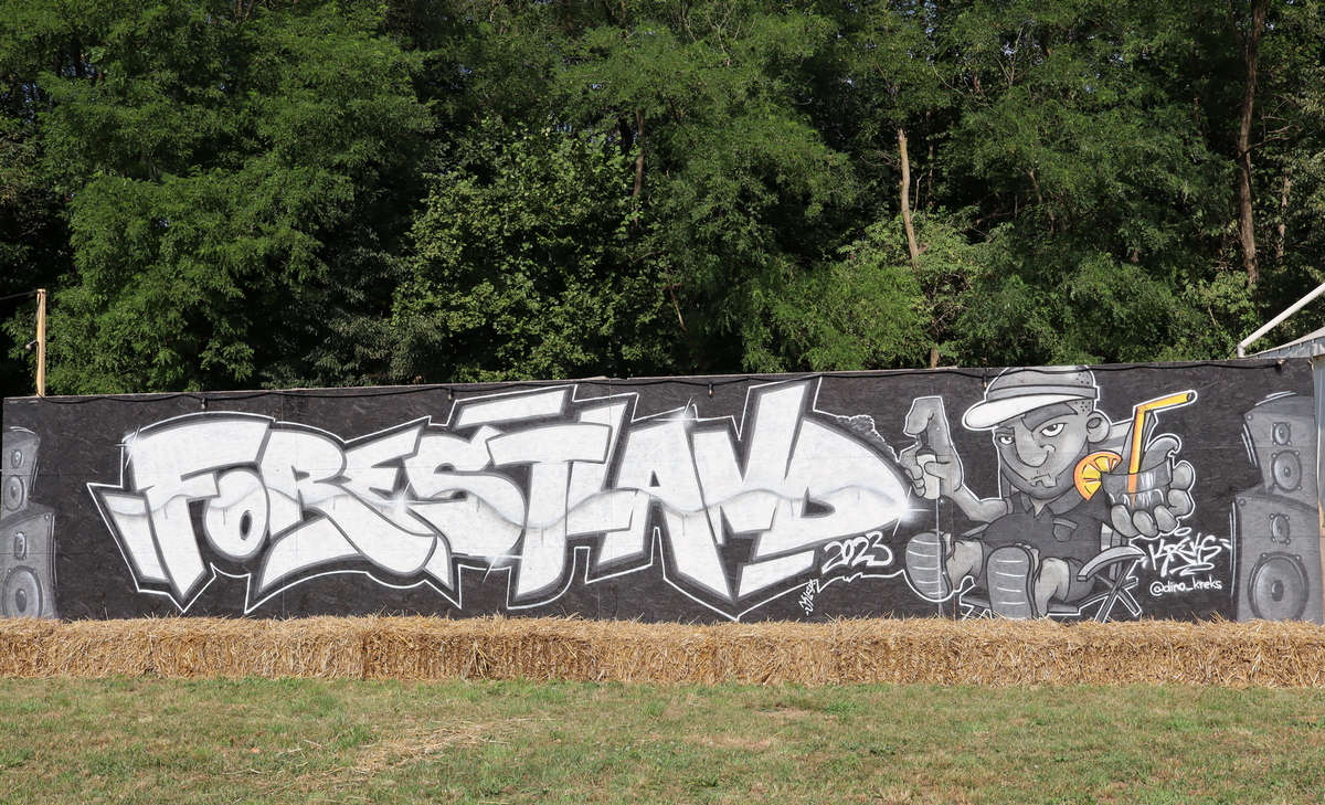 Iza izražajnih grafita koji krase ulaz na „Forestland“ te prostor za koncerte stoji mladi umjetnik Dino Cvetinić, koji u privatnom aranžmanu surađuje s organizatorima „Forestlanda“ već 3. godinu.