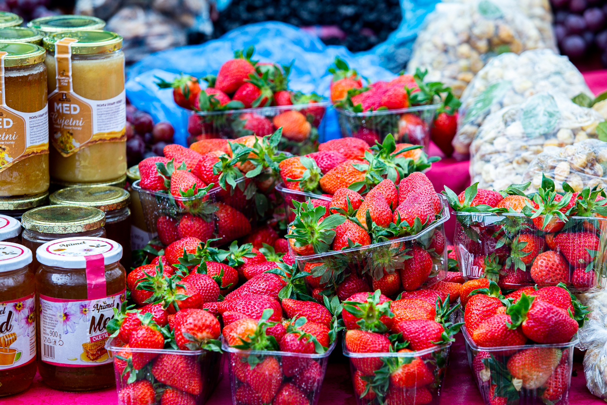 Jagode (mjerica) su bile po 12 kuna, mladi luk po 15 kuna kilogram, koliko je koštao i poriluk, a domaća salata je nuđen po 12 kuna kilogram.