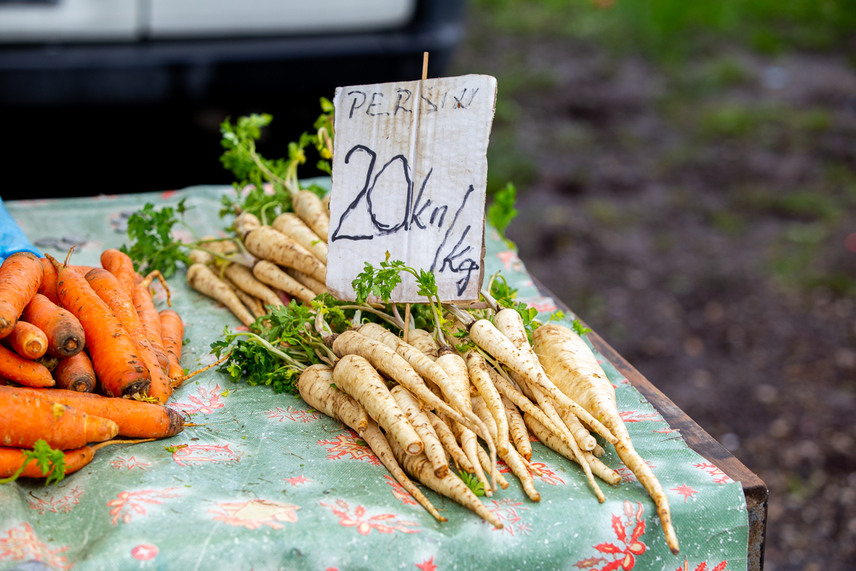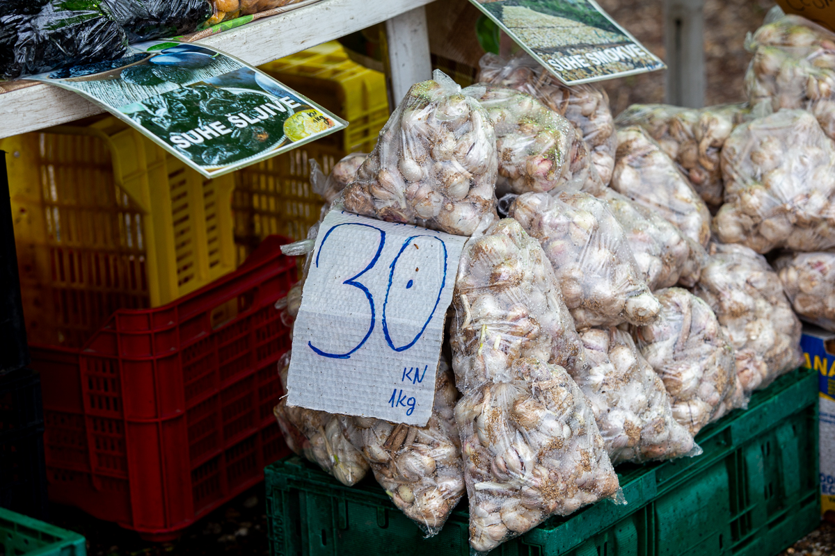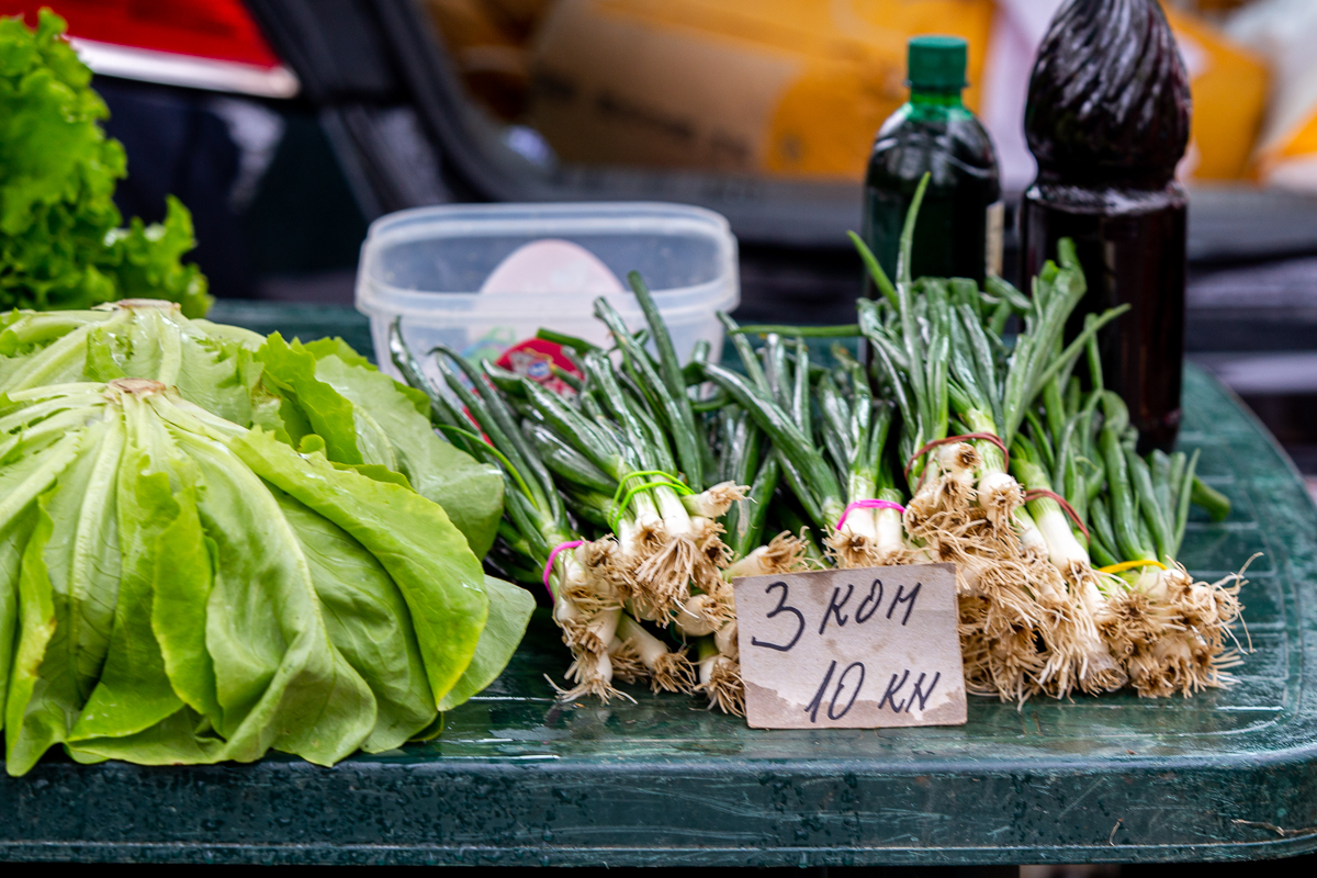 Mladi luk i rotkvica su prodavani po 5 kuna vezica. Šampinjoni su bili po standardnoj cijeni od 20 kuna kilogram, krumpir po 4 kune, luk po 5 kuna, češnjak domaći po 30 i 40 kuna kilogram.