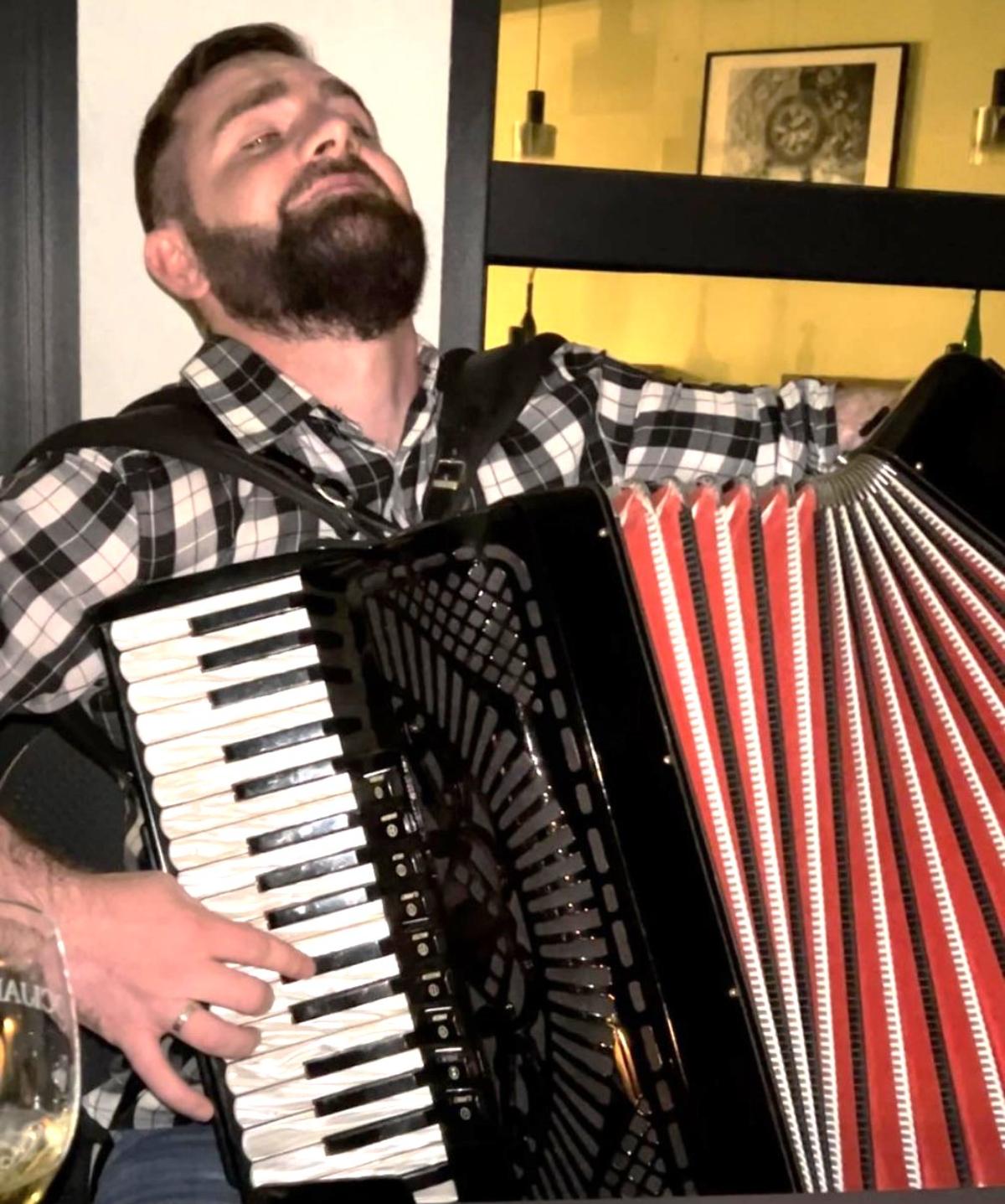 – Ja sam Mustafa Ikinić iz Tuzle, prijatelji me zovu Muće – kaže i ne razdvaja se od harmonike.