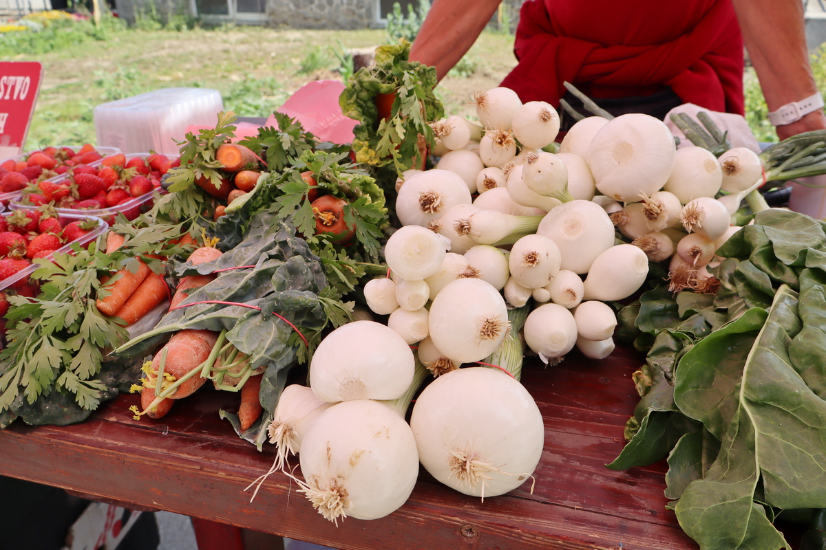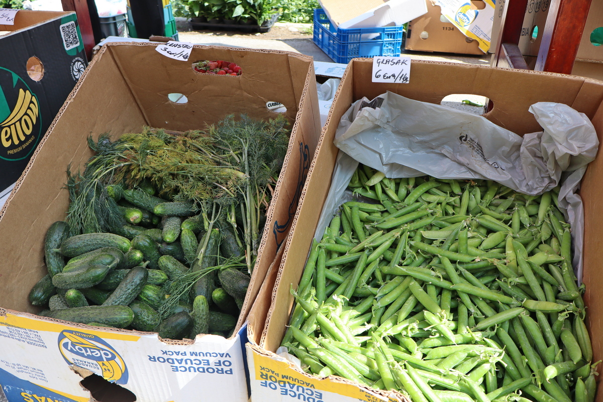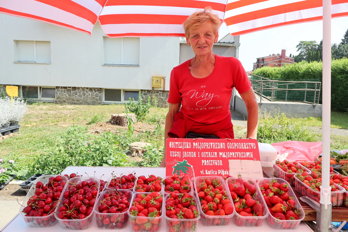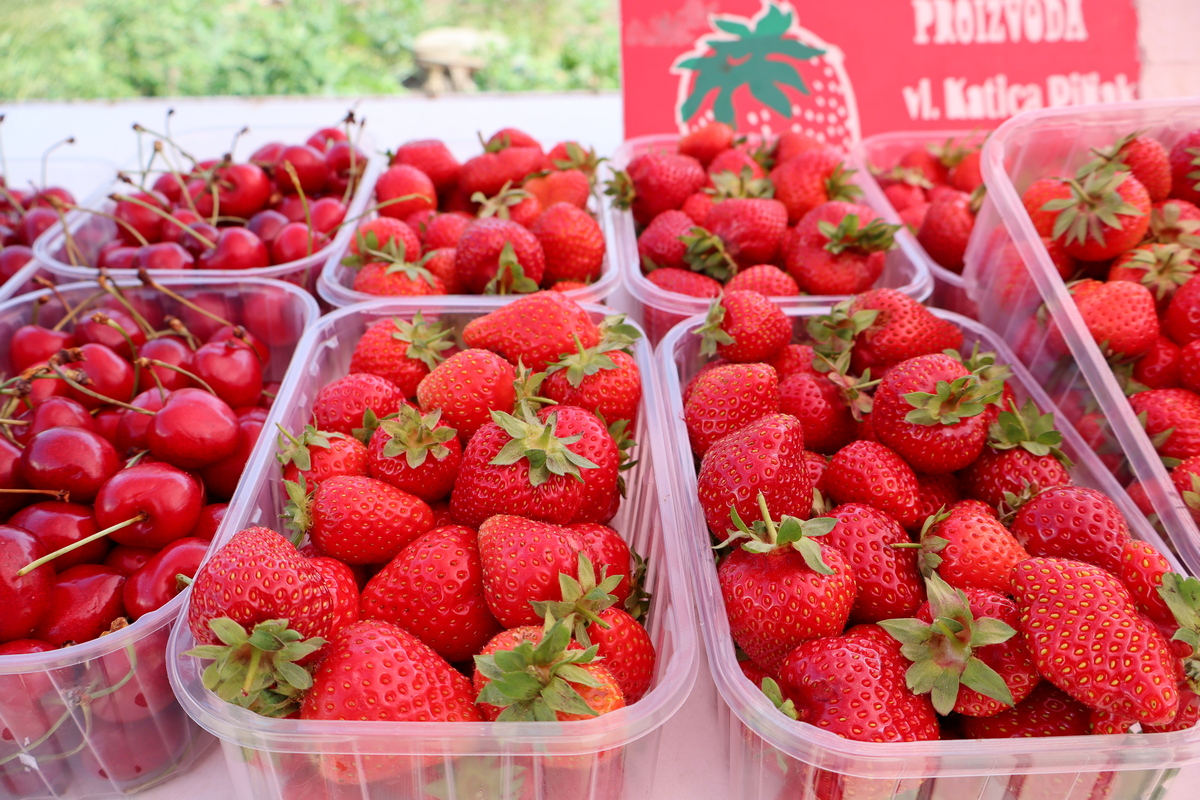 Od proljetno-ljetnog voća mame vas mirisne jagode (3-3,50 eura/kg) i sočne, ali skupe trešnje (4 eura/kg). Dobro su se prodavali krastavci pogodni za kiseljenje (3eur/kg), a nudi se i grašak u mahuni (6 eura/kg), kelj (2,5 eura/kg), mlado zelje (1,5 eura/kg), blitva (vezica 1,50 eura) ili salata (1,20 – 1,50 eura/komad).