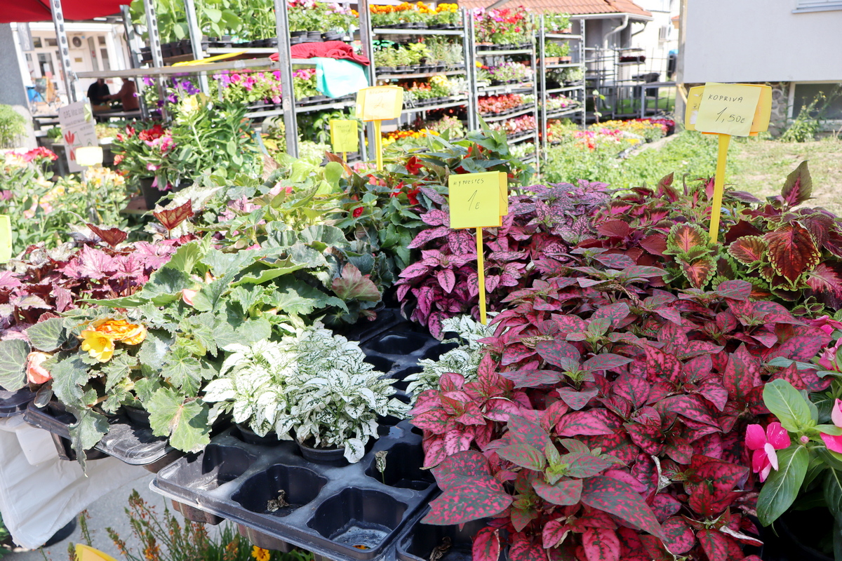 A želite li obnoviti cvijeće u svom vrtu ili teglama, dočekat će vas teška odluka što izabrati, jer ponuda na tržnici je zaista velika. Cvijeće u malim teglicama nudi se od 70 centi do 2 eura, a u ponudi su: vinke, pelargonije, pentasi, begonije, sedum, levisije itd. Tu je i velik izbor većeg cvijeća, od gerbera do smilja i ivančica, a također i razno ukrasno i začinsko bilje.