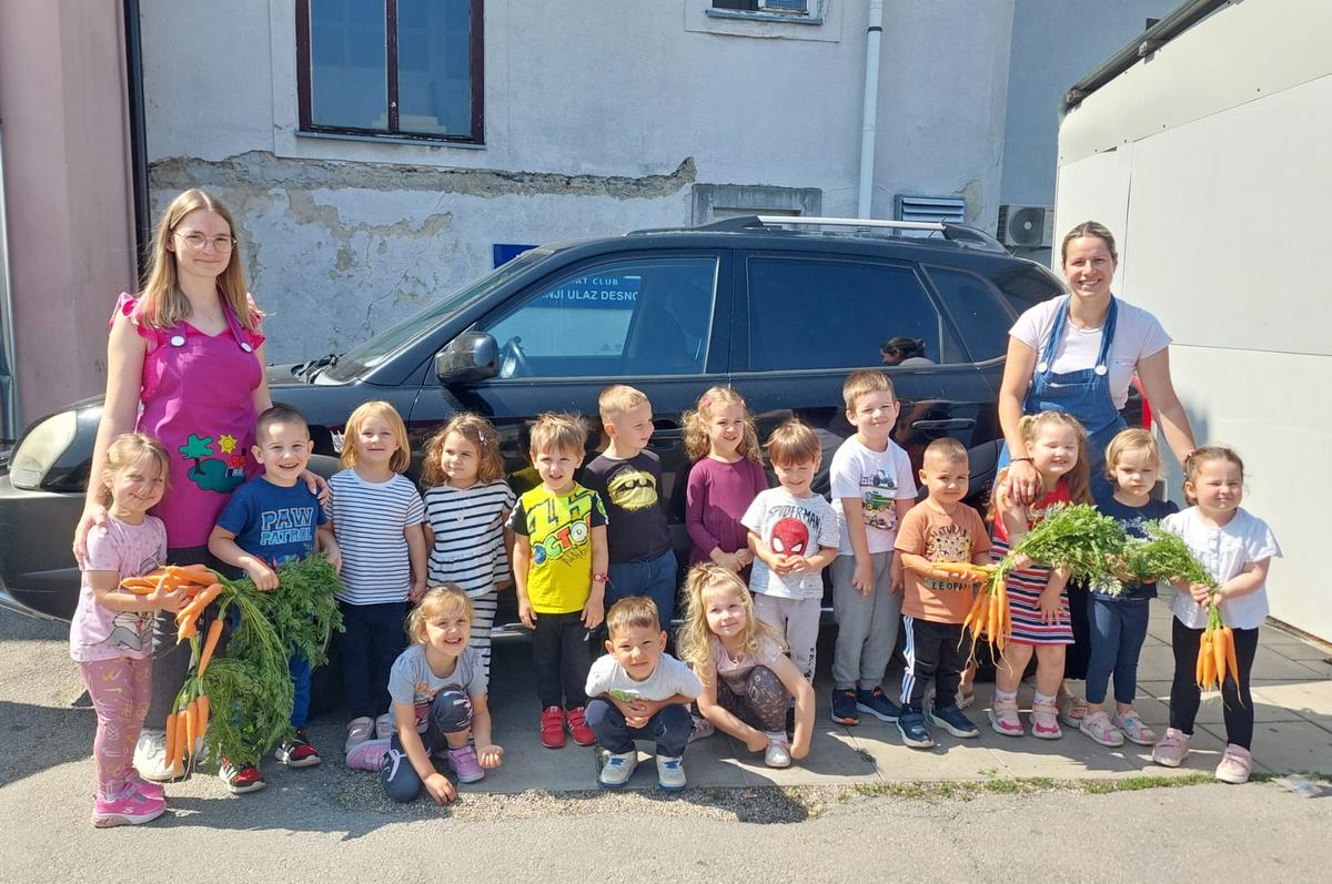 Mališani iz Dječjeg vrtića Fijolica s tržnice su u vrtić nosili mlade mrkvice