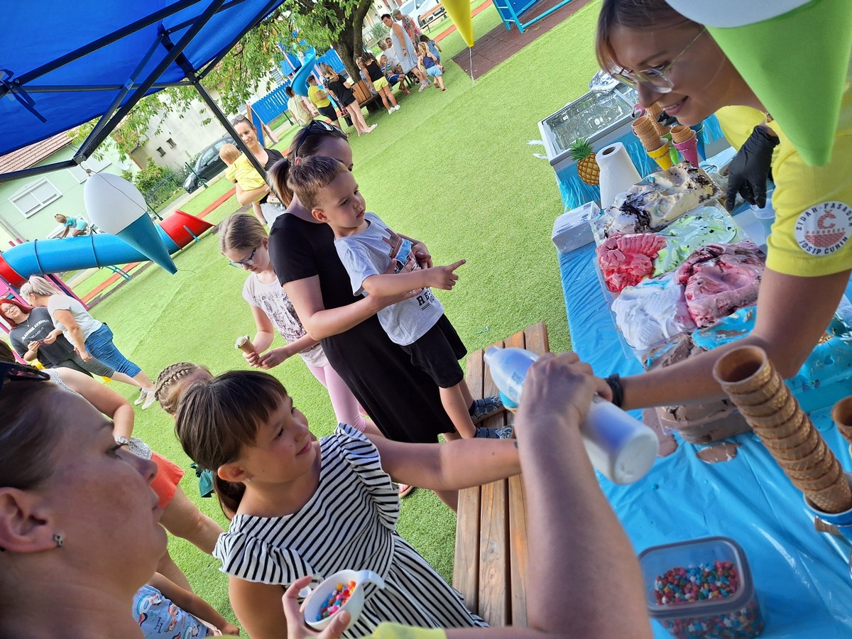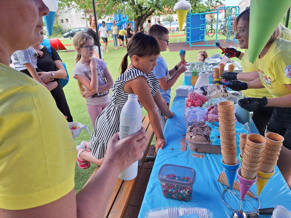 Uz ugodno druženje, razgovor i naravno igru, djeca i roditelji počastili su se osvježavajućim sladoledom, lubenicom, kavom i sokovima. Ovaj „Sladoled party“ sigurno će ostati klincima u lijepo sjećanju, a Društvo „Naša djeca“ Općine Orehovica zahvaljuju Slastičarnici Holiday iz Preloga na prefinom sladoledu.