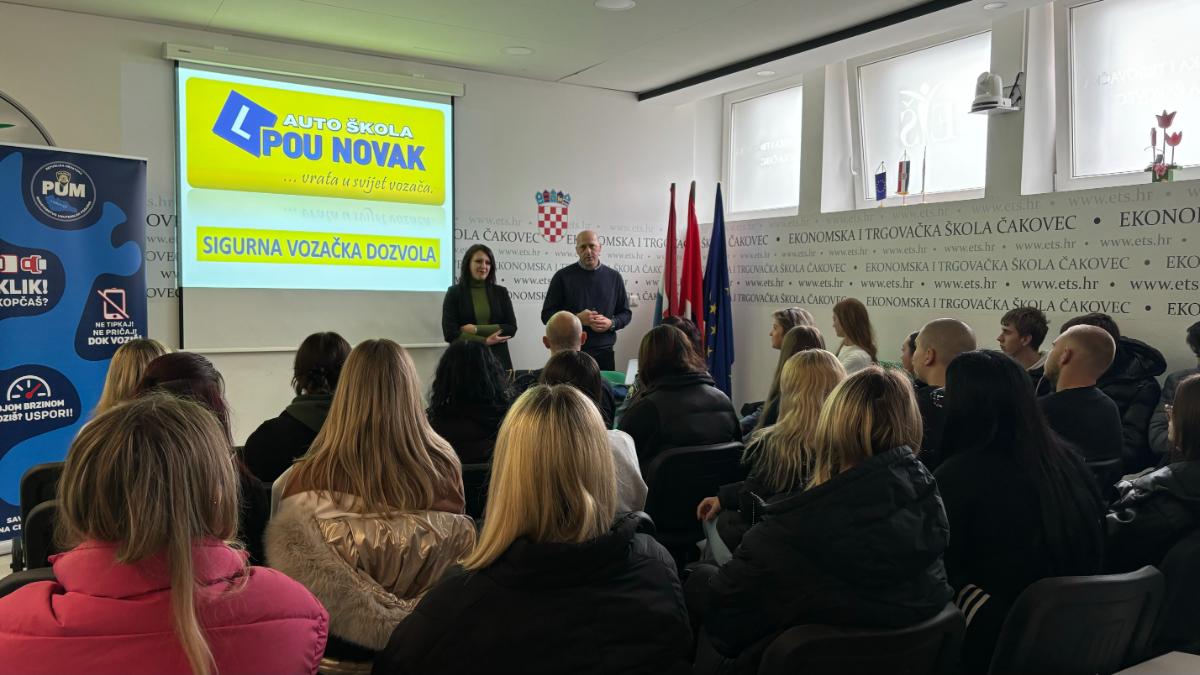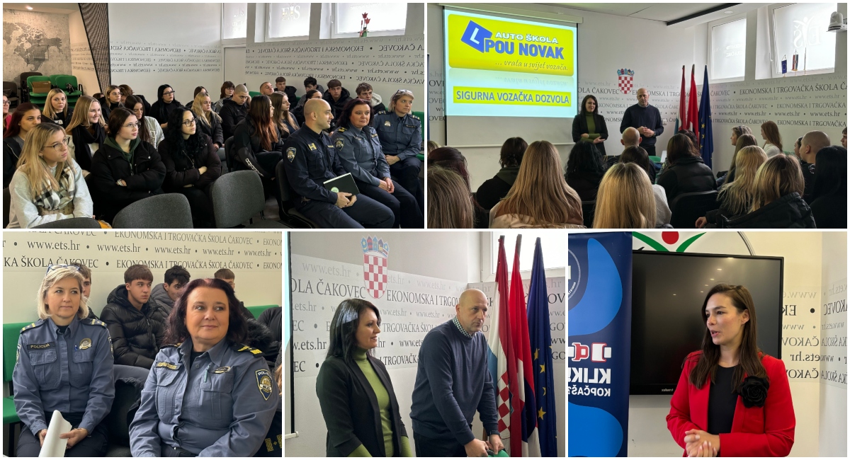 U prostoru i ispred Ekonomske i trgovačke škole Čakovec, danas, 19. studenog 2024. godine, održava se edukativni projekt “Sigurna vozačka dozvola”, kojemu je domaćin škola, a glavni sponzor Autoškola Pučko otvoreno učilište Novak. Projekt se provodi u organizaciji Art Hill d.o.o. i MUP-a – Sigurnost cestovnog prometa, dok su HANZA medija i Europlakat njegovi medijski pokrovitelji.